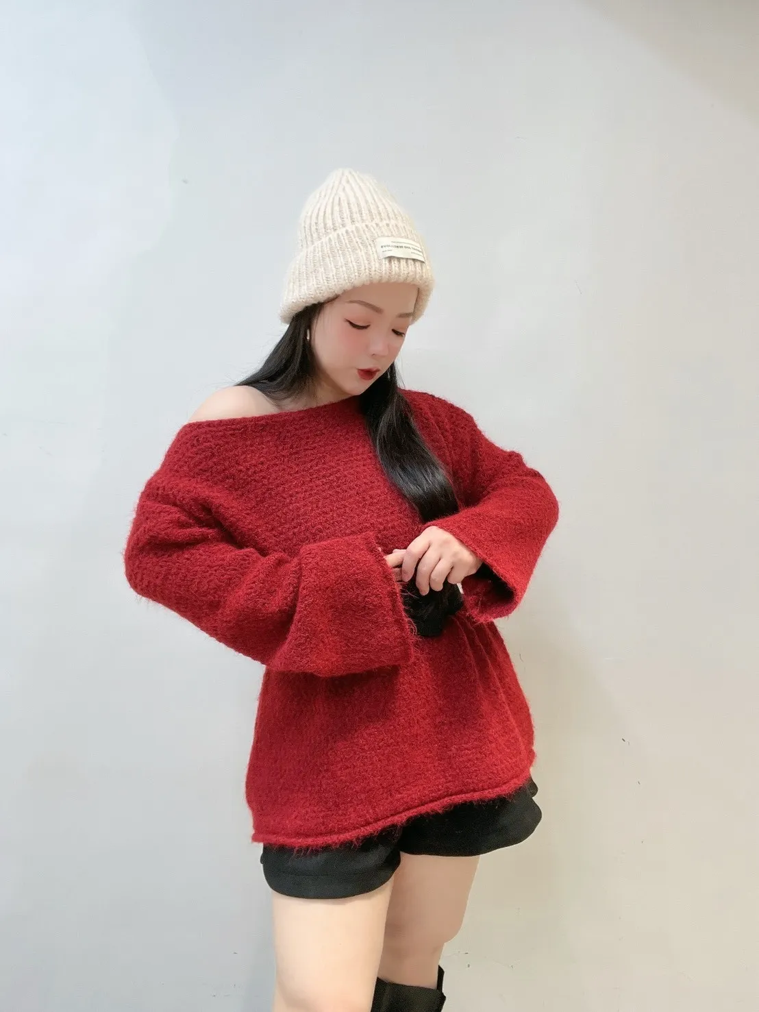 👗 寬鬆版型 × 微露肩穿法