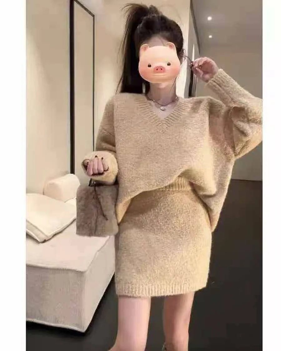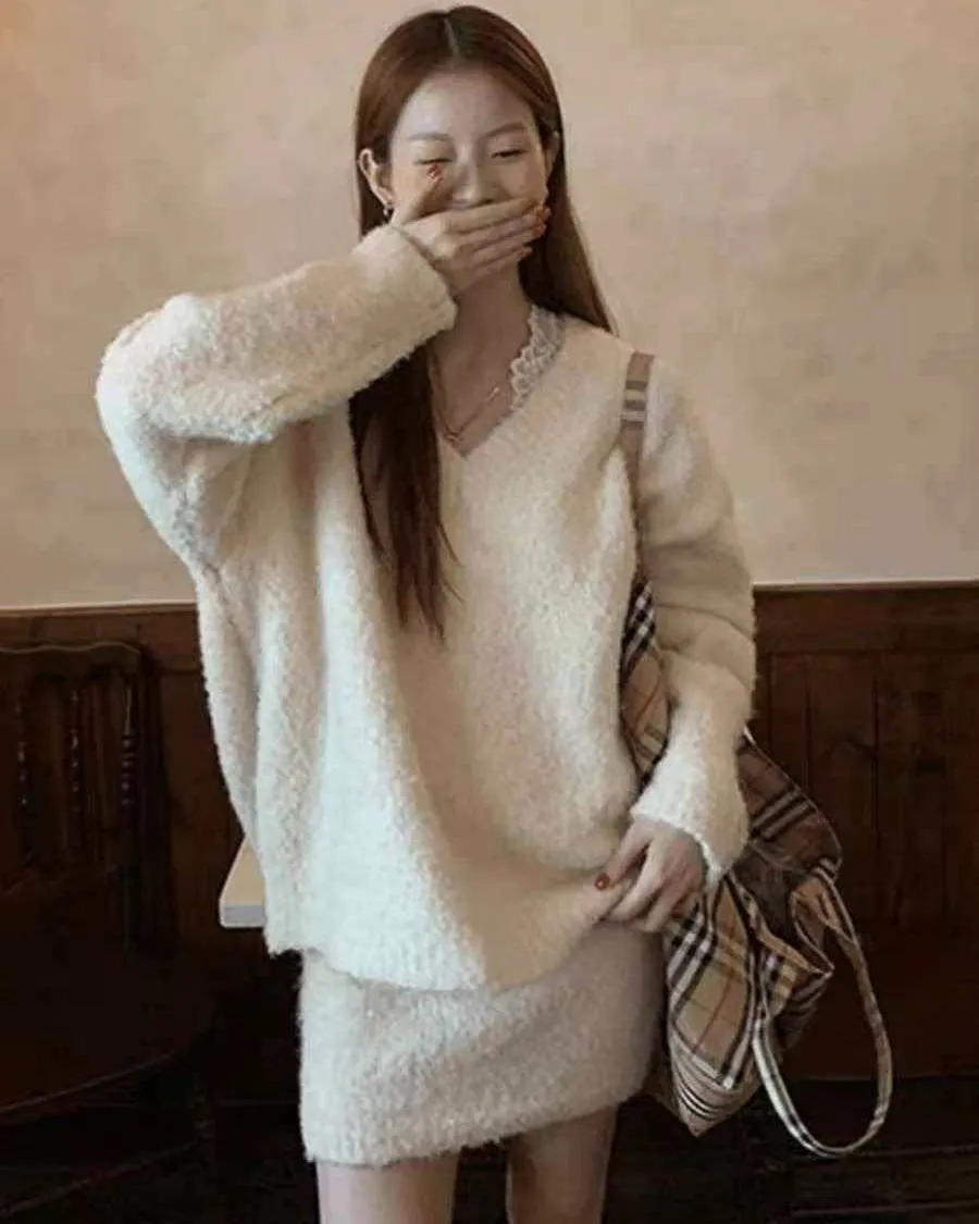 ✨影片介紹🔗💛🤍✨ 慵懶顯瘦 V 領毛衣套裝 ✨🤍