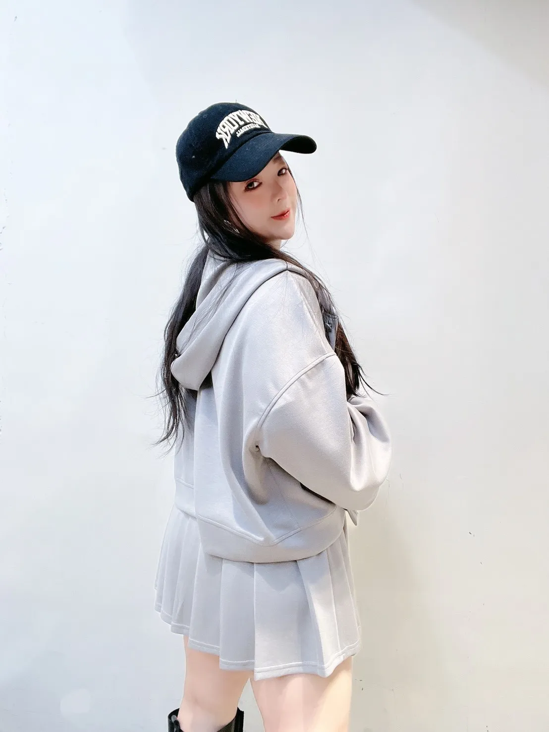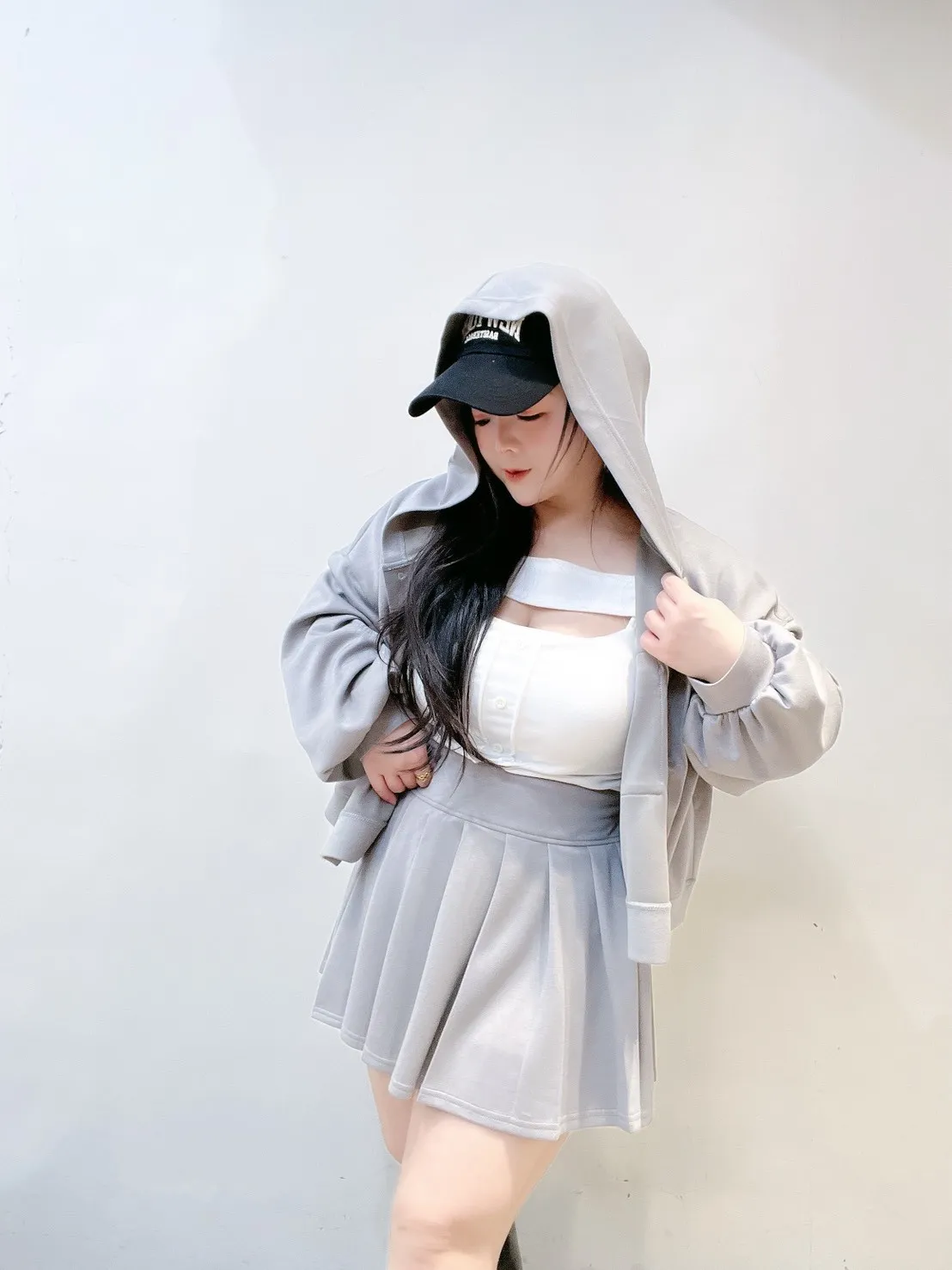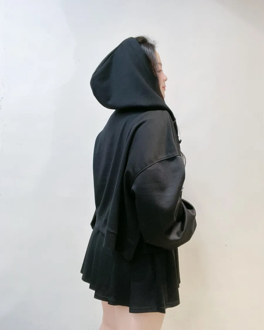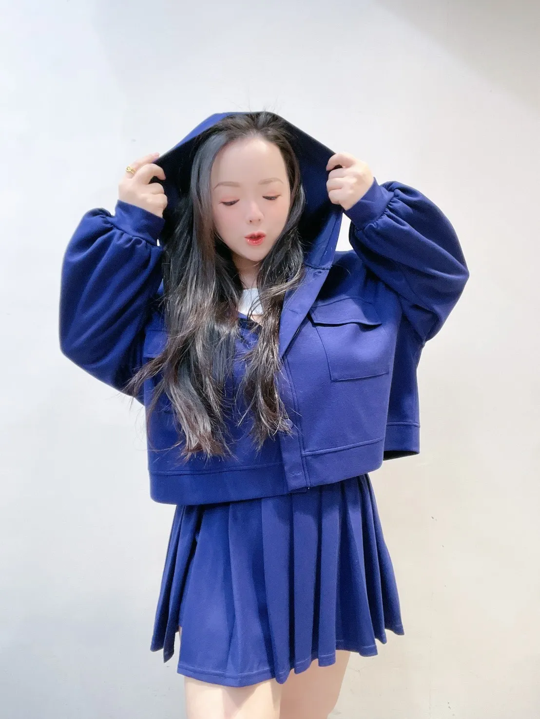 💙甜辣街頭連帽外套+開叉褲裙套裝💙