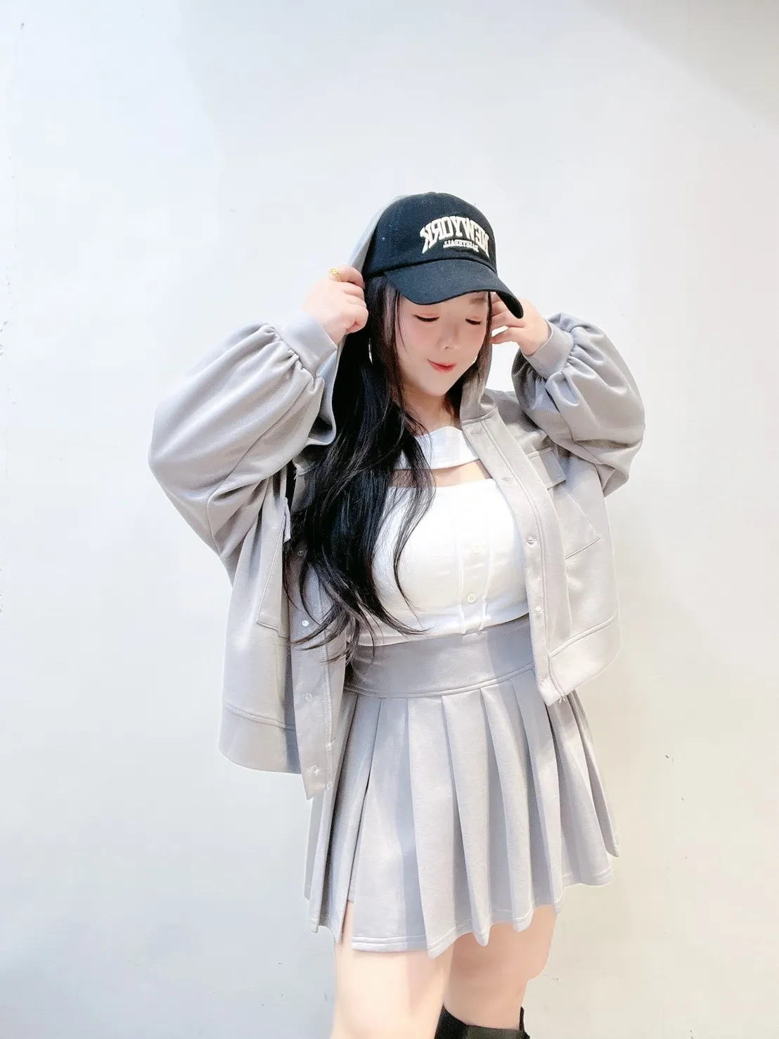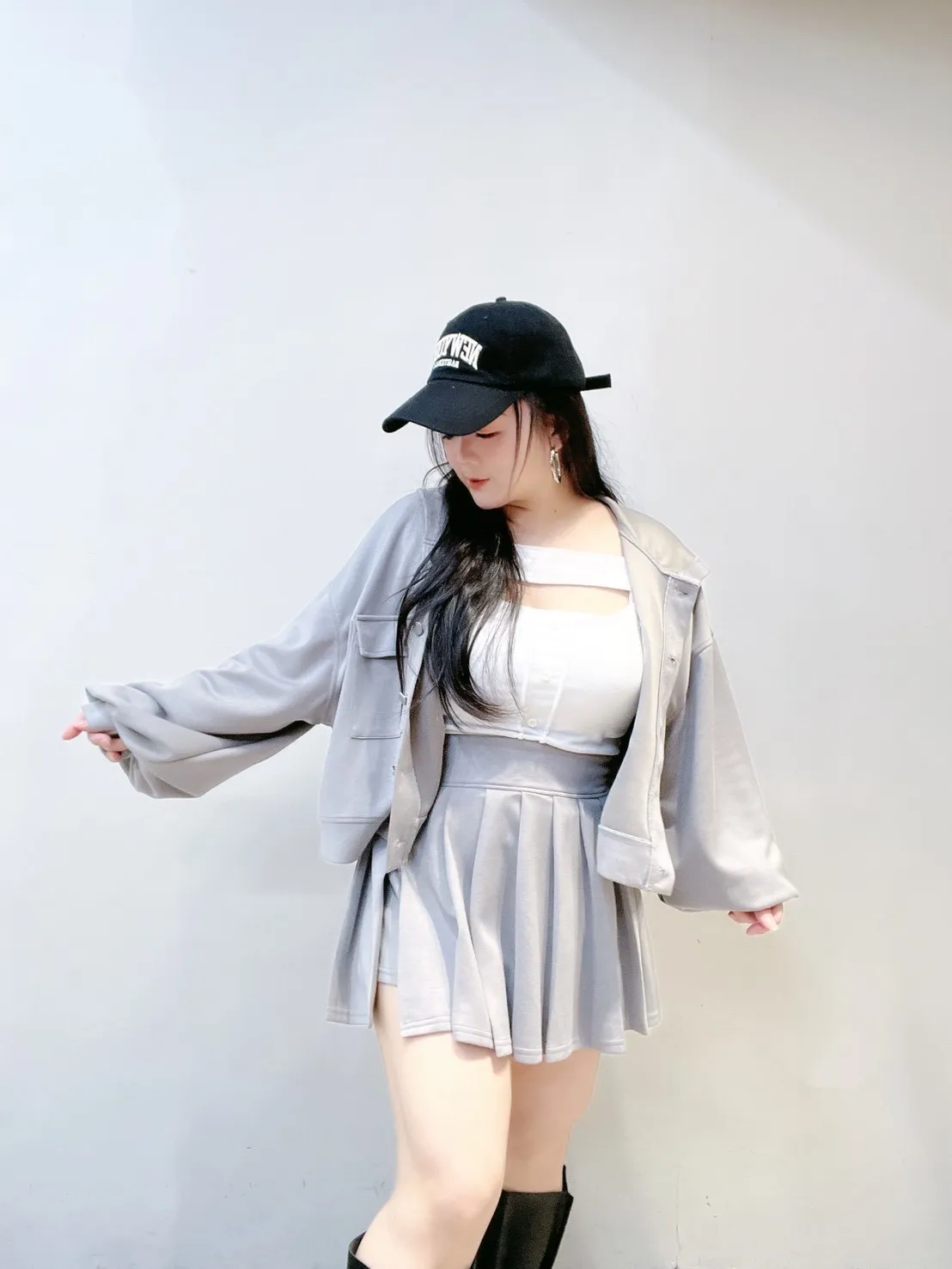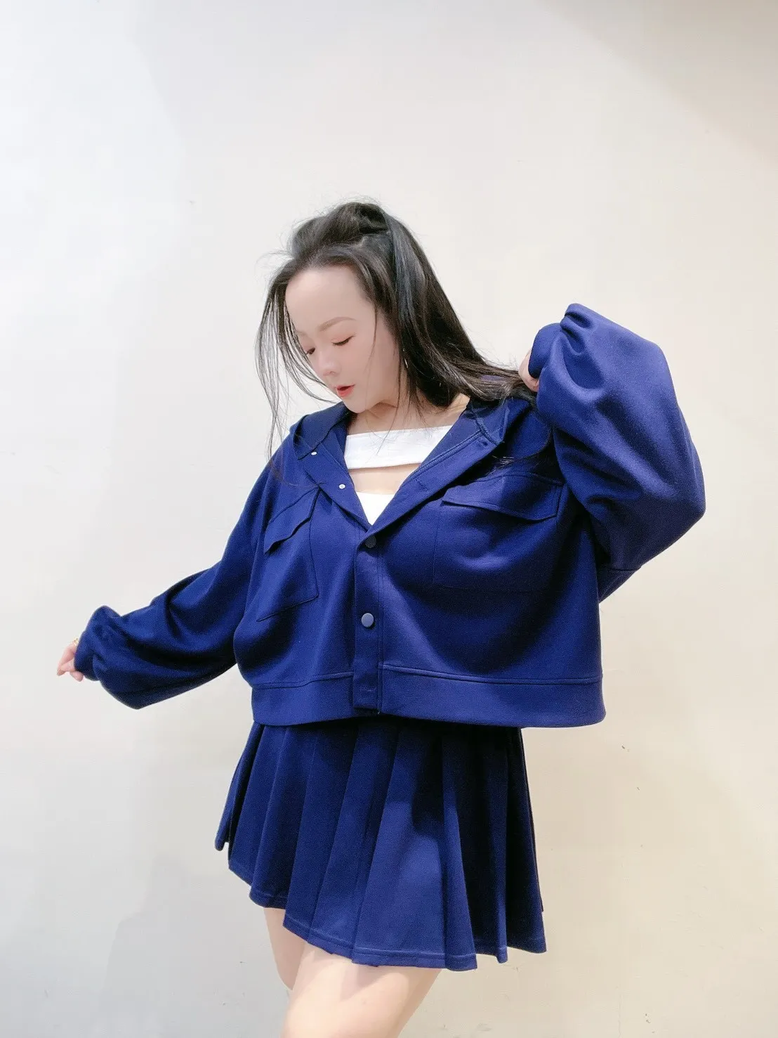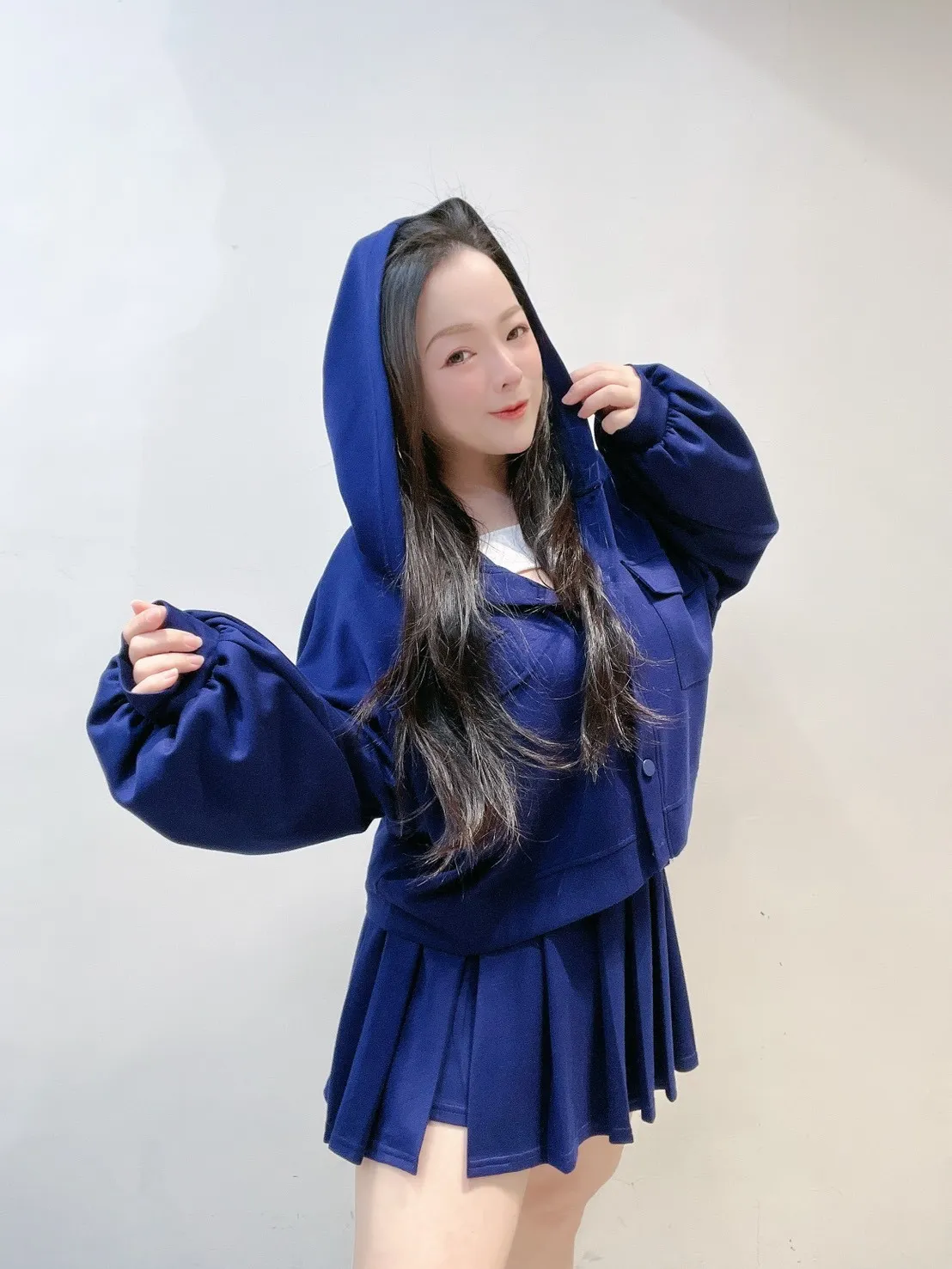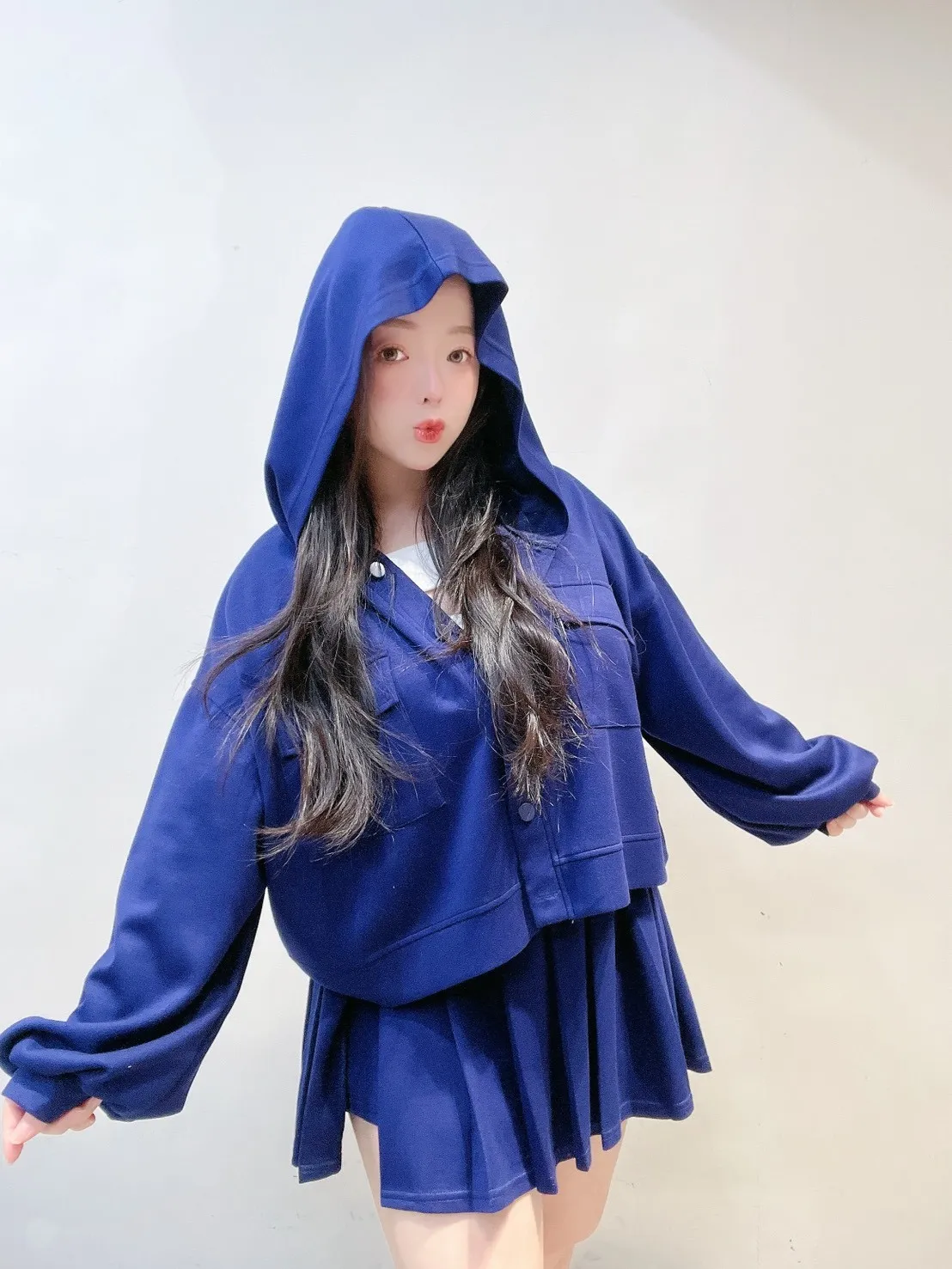 💙甜辣街頭連帽外套+開叉褲裙套裝💙