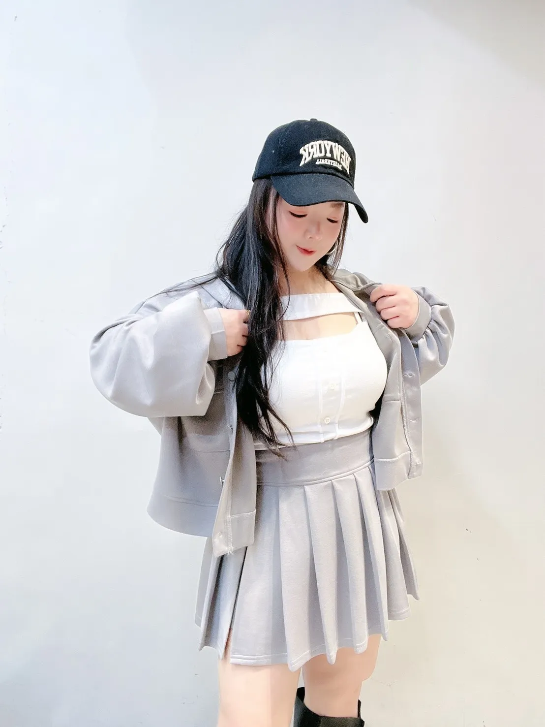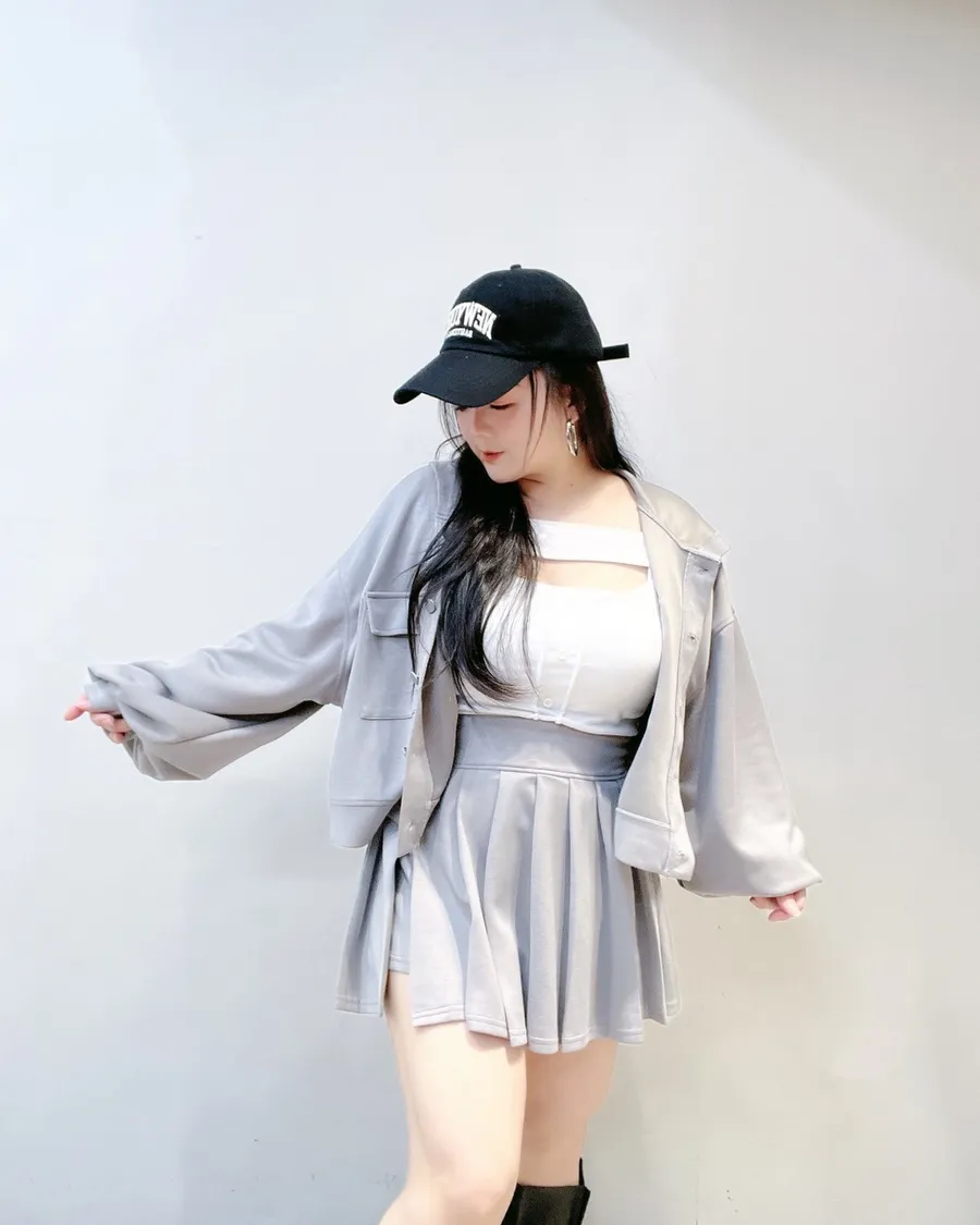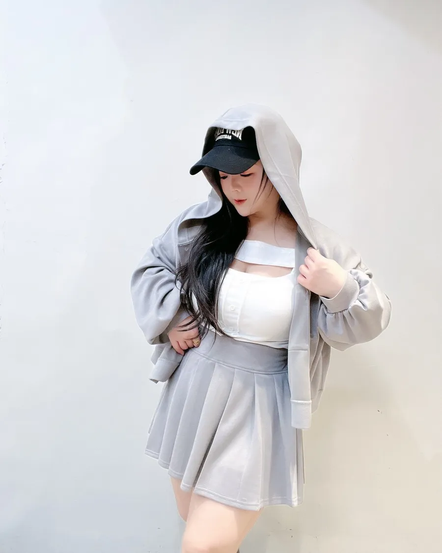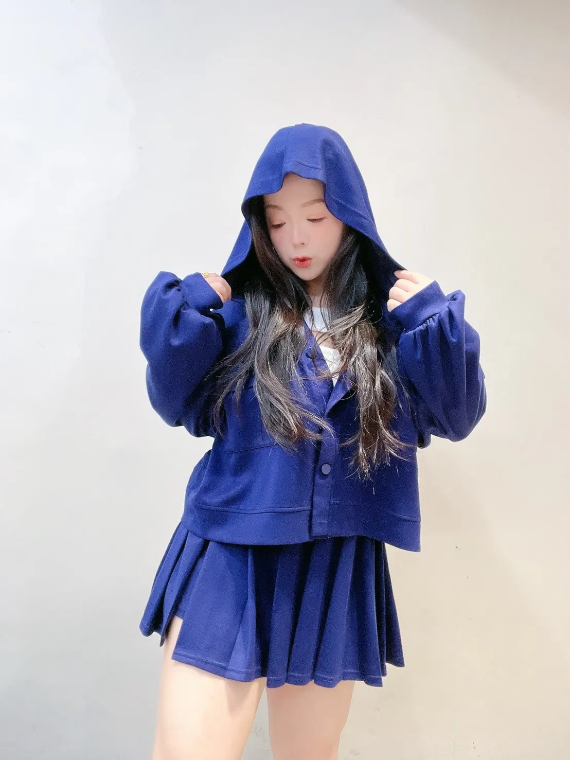 💙甜辣街頭連帽外套+開叉褲裙套裝💙