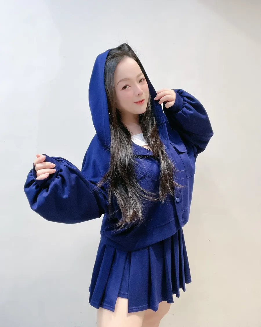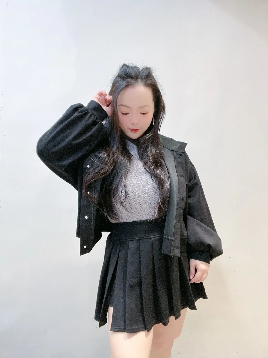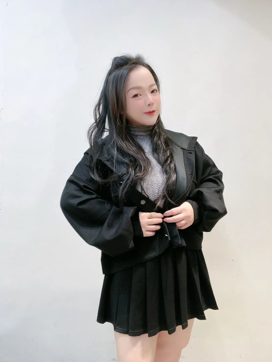 上身是甜辣連帽短外套,燈籠袖設計修飾手臂線條💪