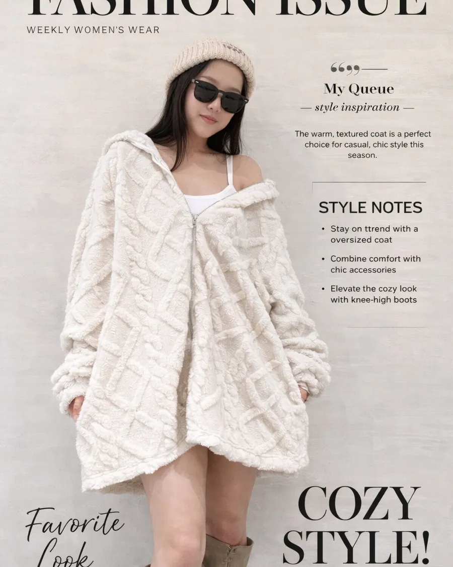 寬鬆剪裁不挑身形,連帽設計修飾臉型,長版衣長自然遮臀,兼顧舒適度與造型感,是秋冬必備的實穿外套。
