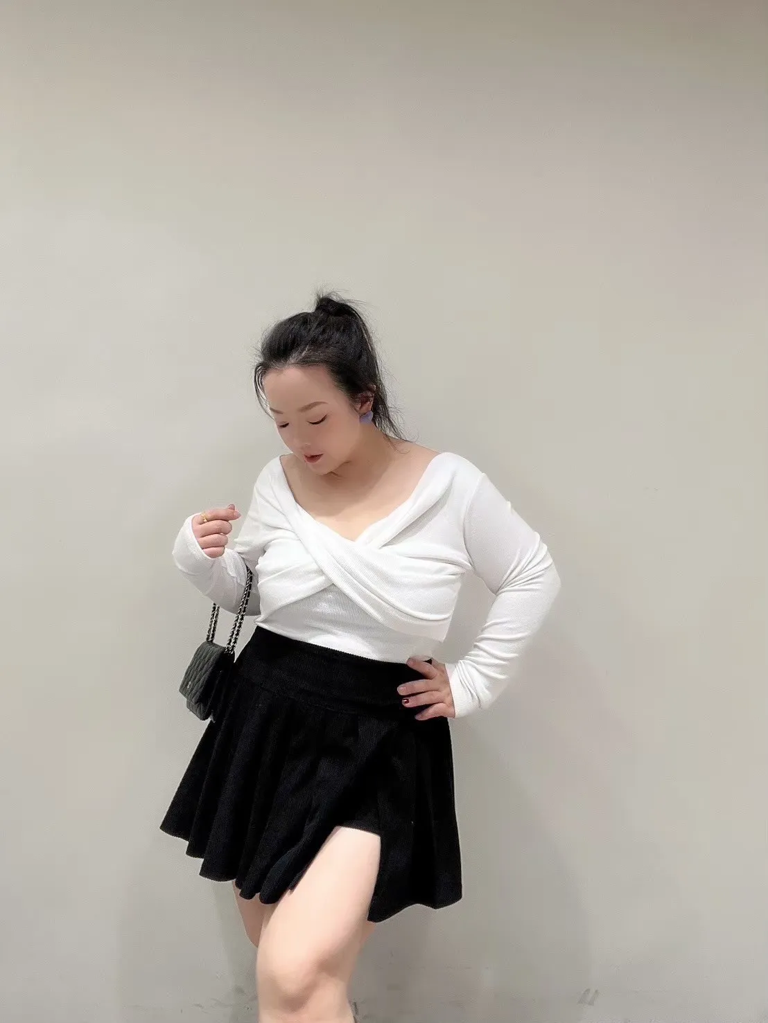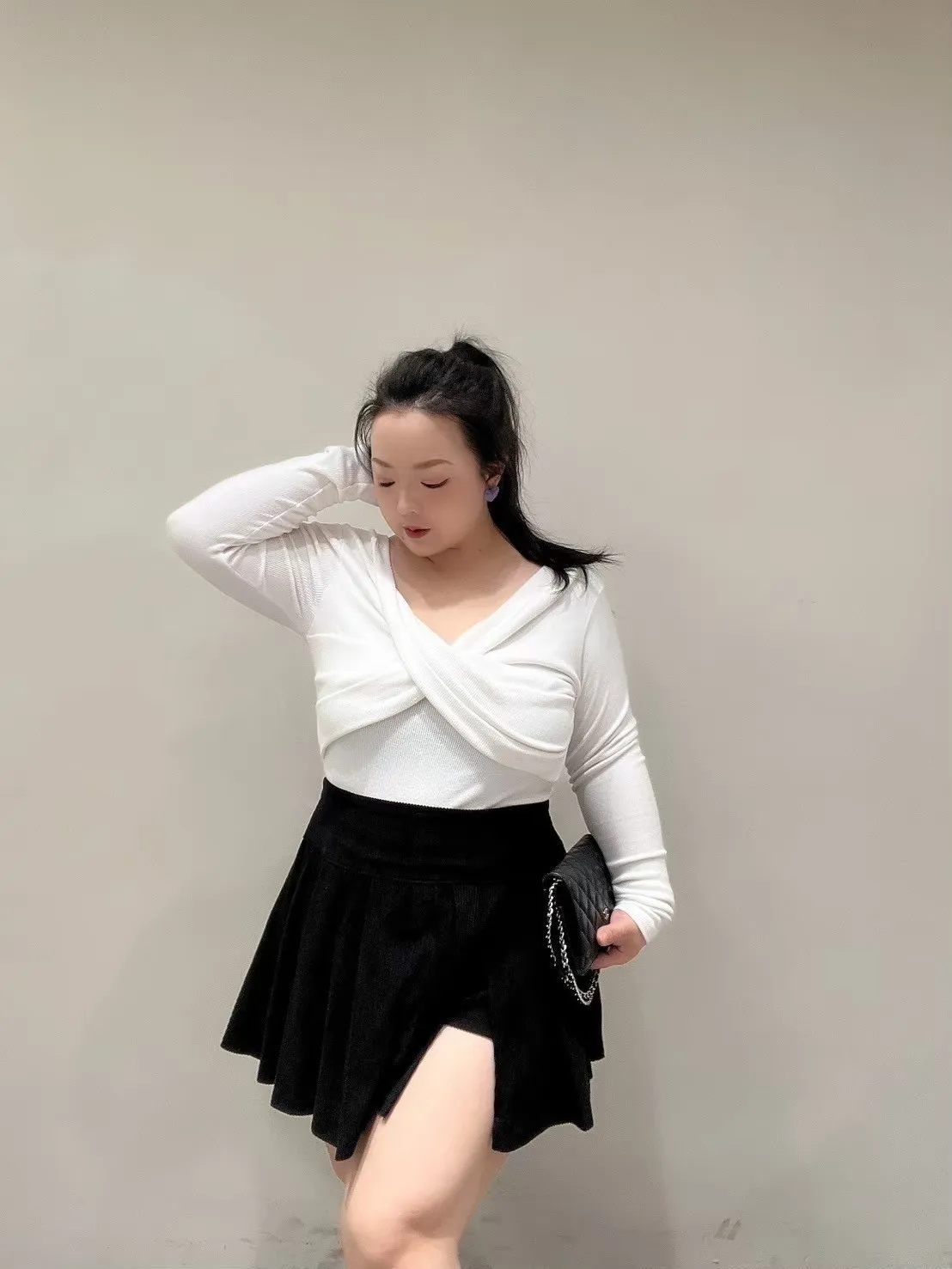 影片在這-坑條胸交叉磨毛罩杯上衣