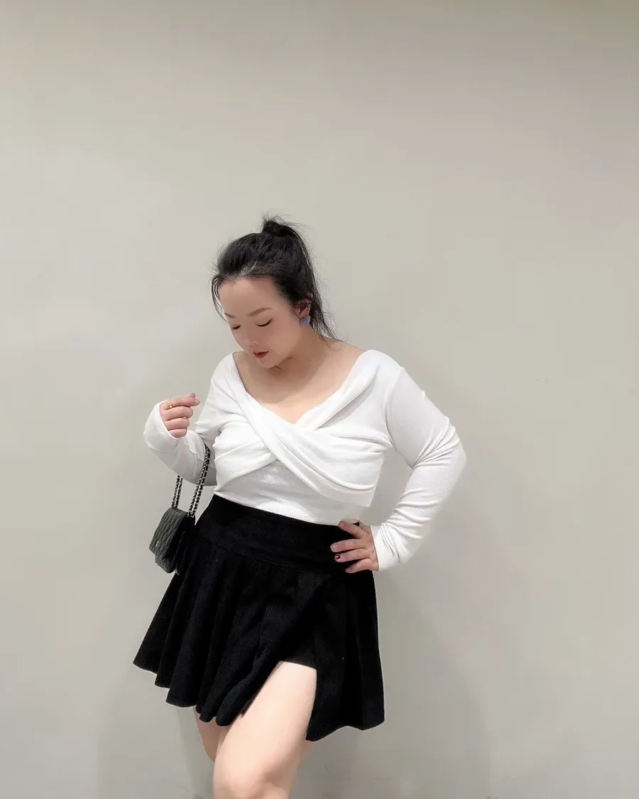 💗坑條胸交叉磨毛罩杯上衣(L-2L)