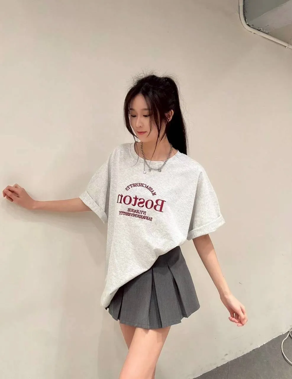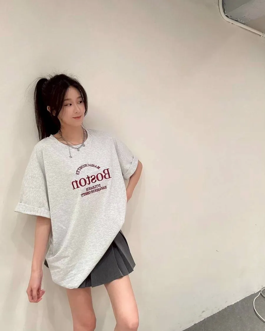 一穿就有韓系氛圍感的慵懶大T。