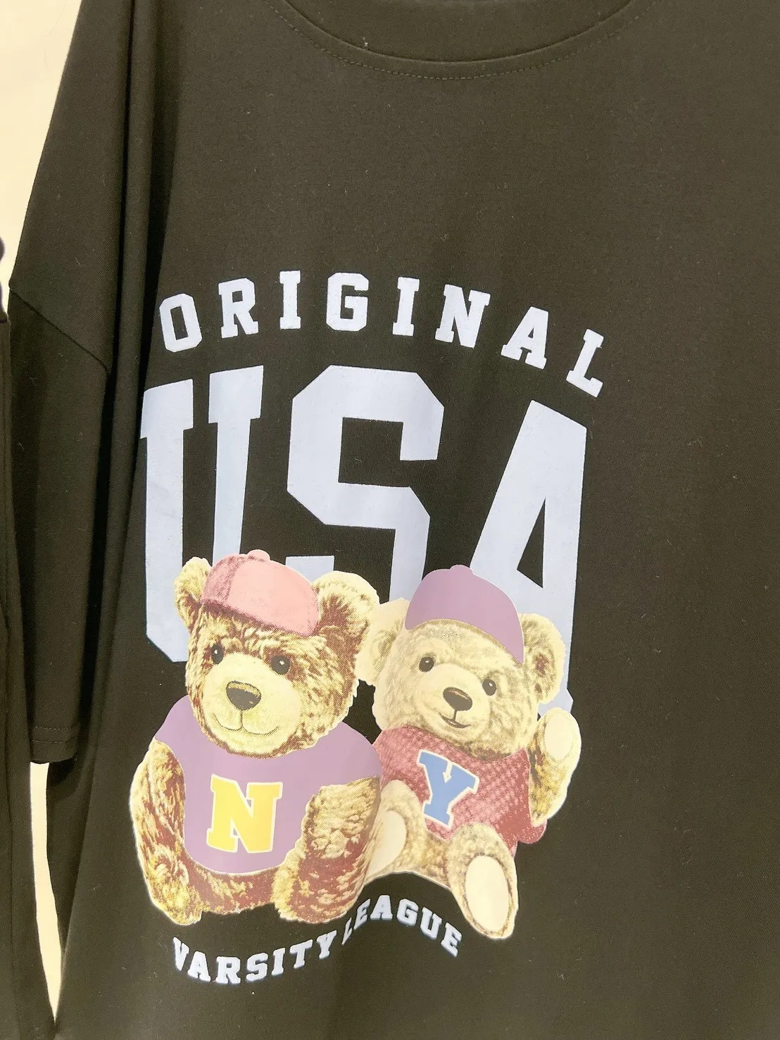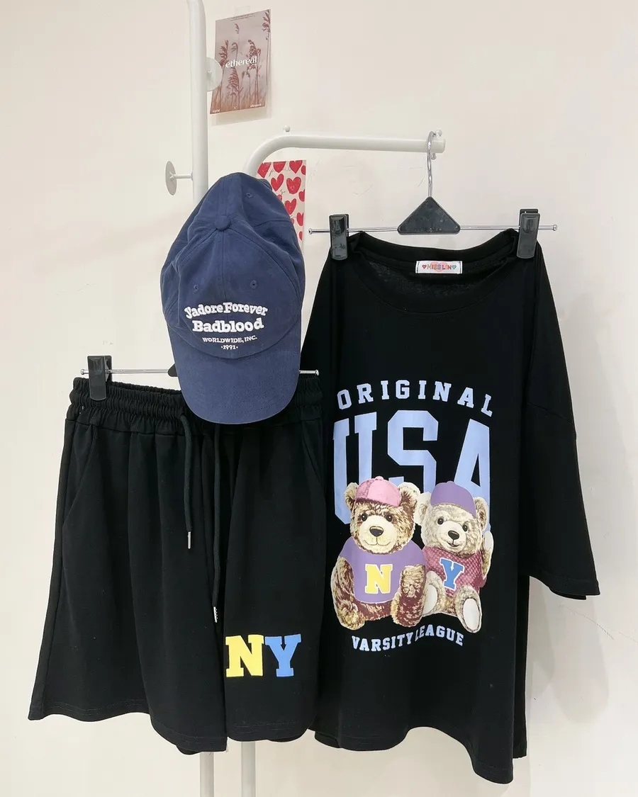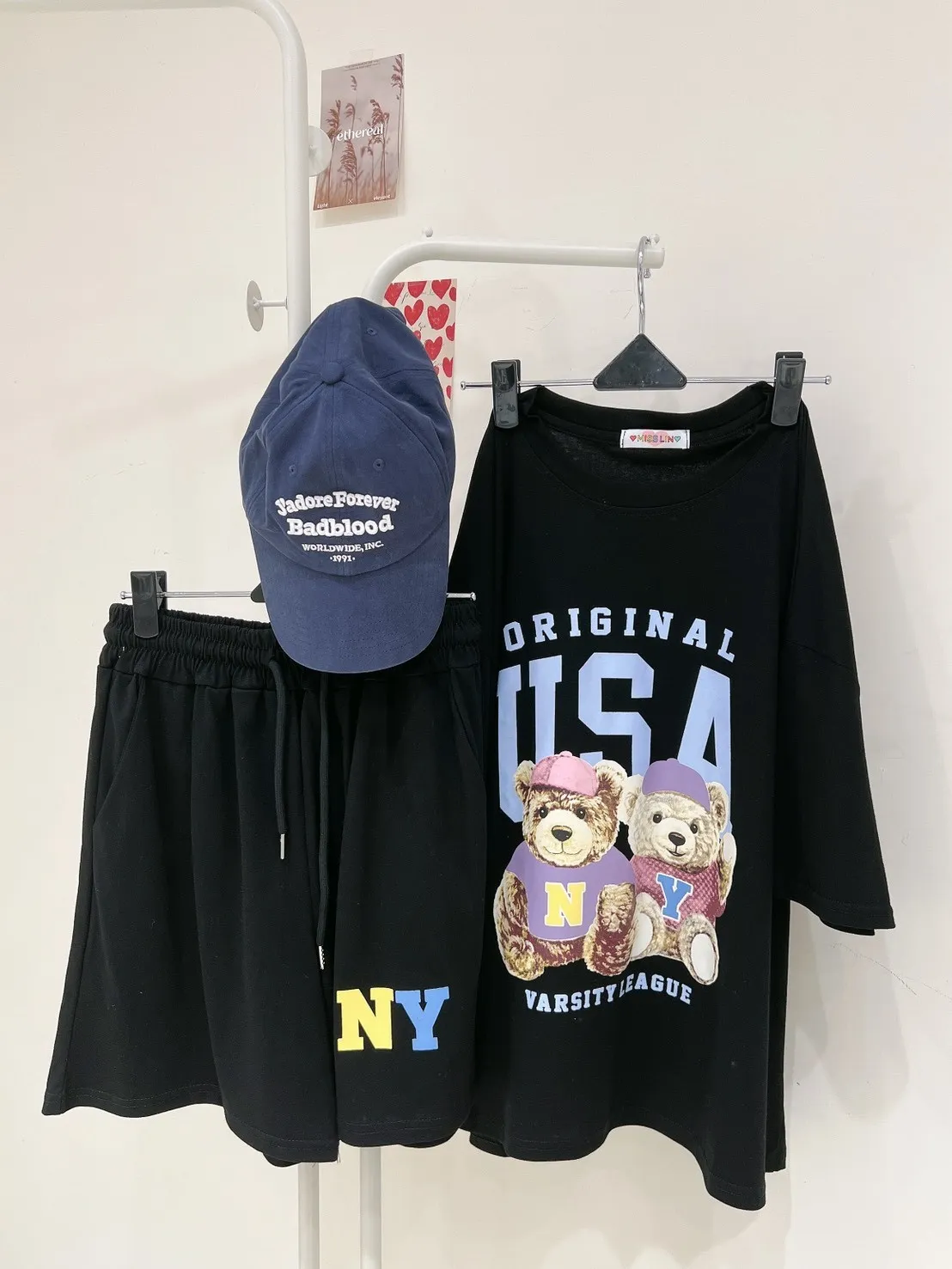 經典NY字樣搭配泰迪熊圖案,整體是偏美式休閒又帶點童趣感。