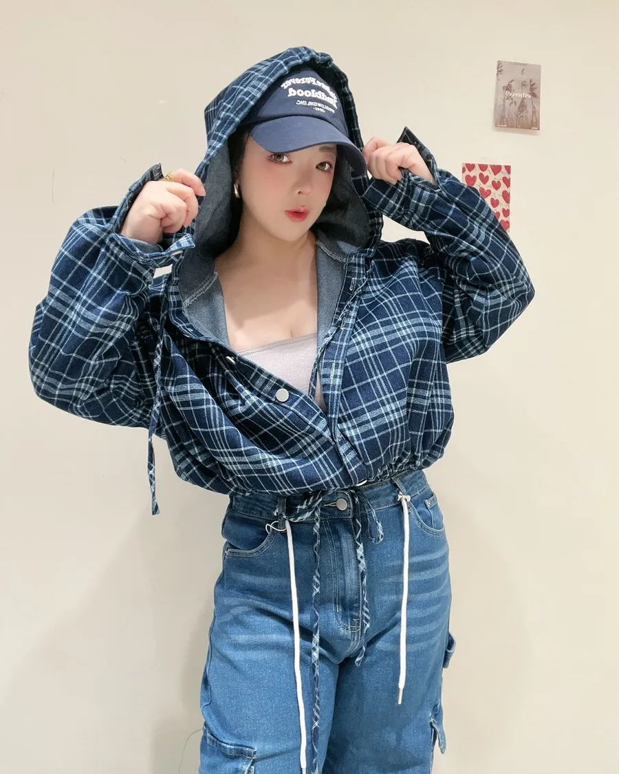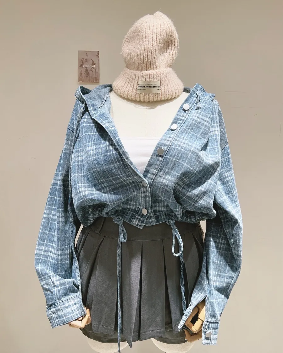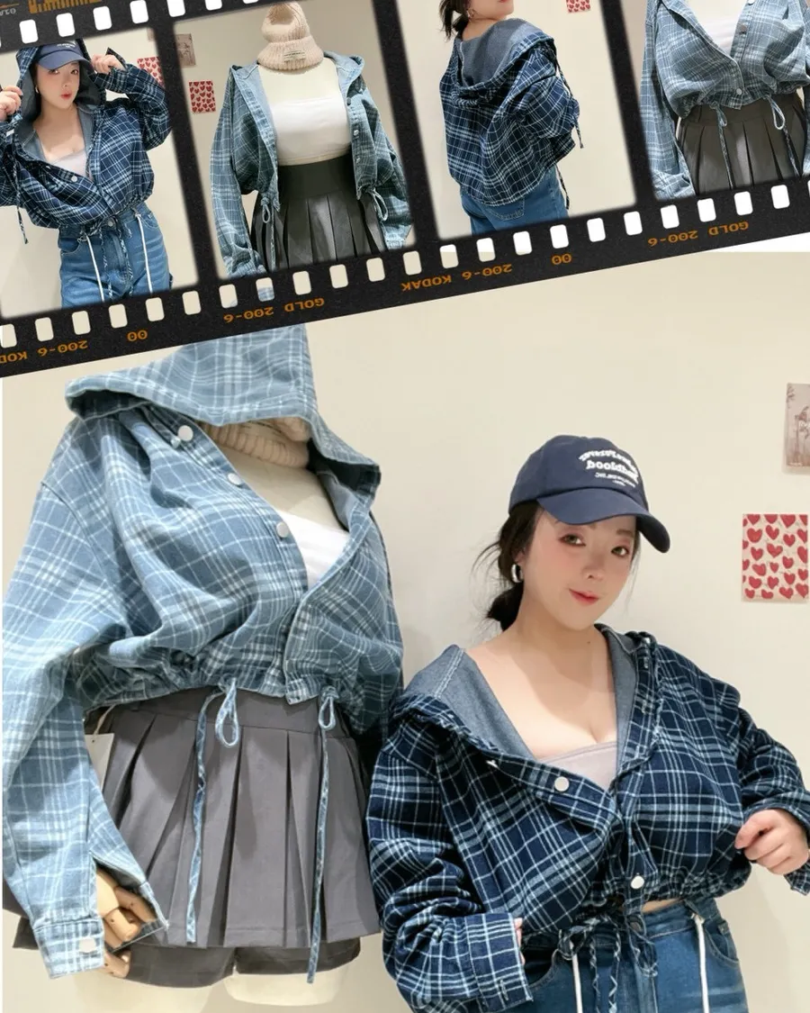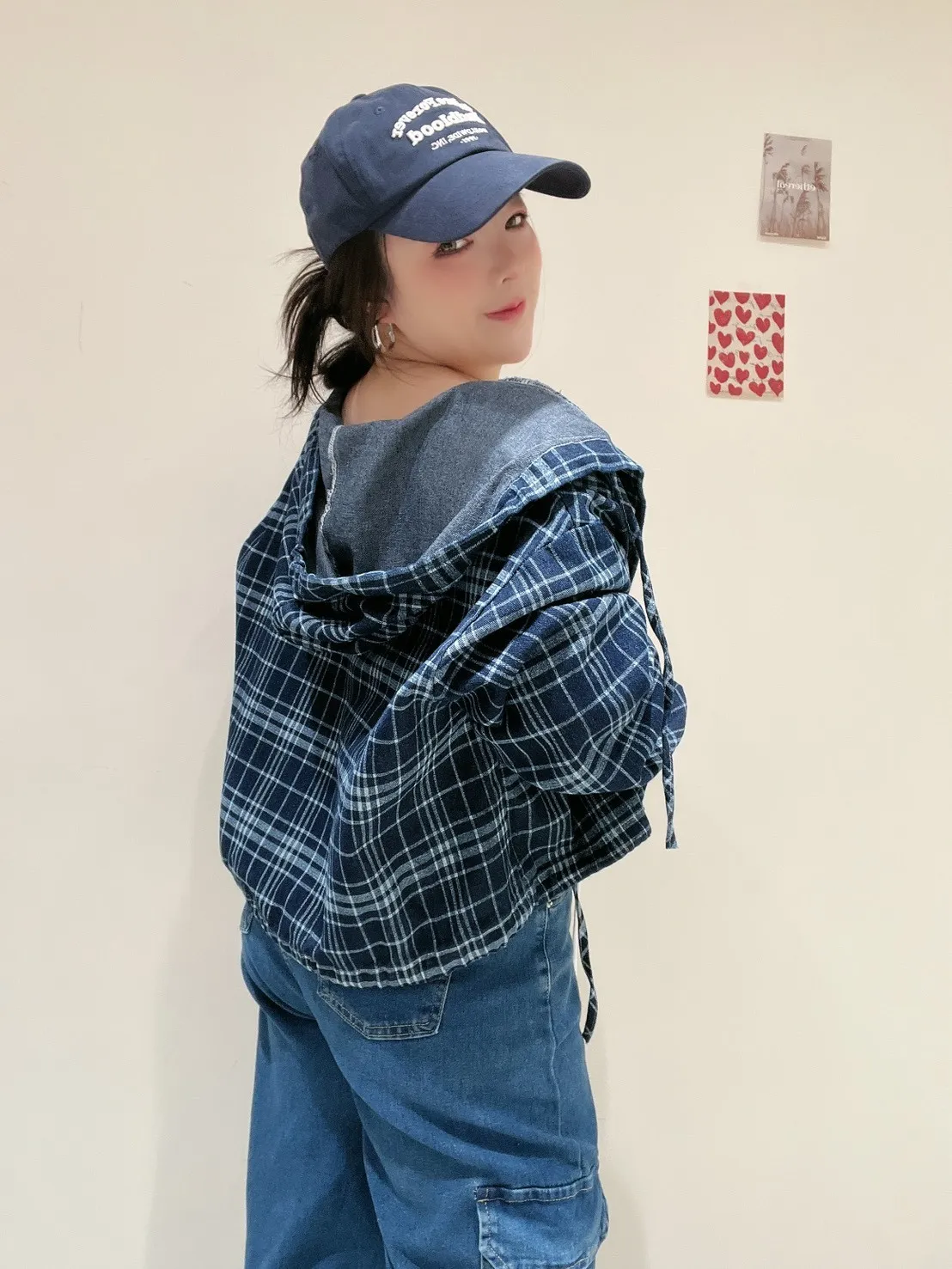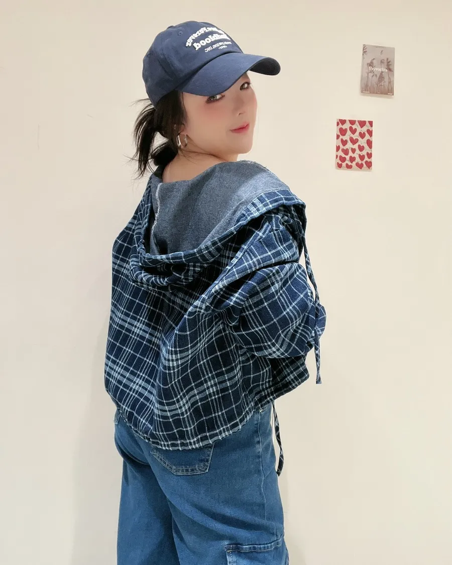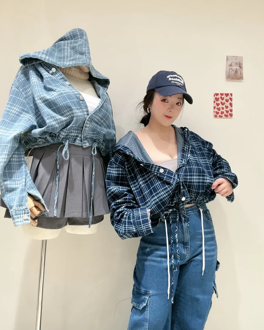 格紋設計結合連帽元素,休閒中帶點個性,穿起來不會無聊。