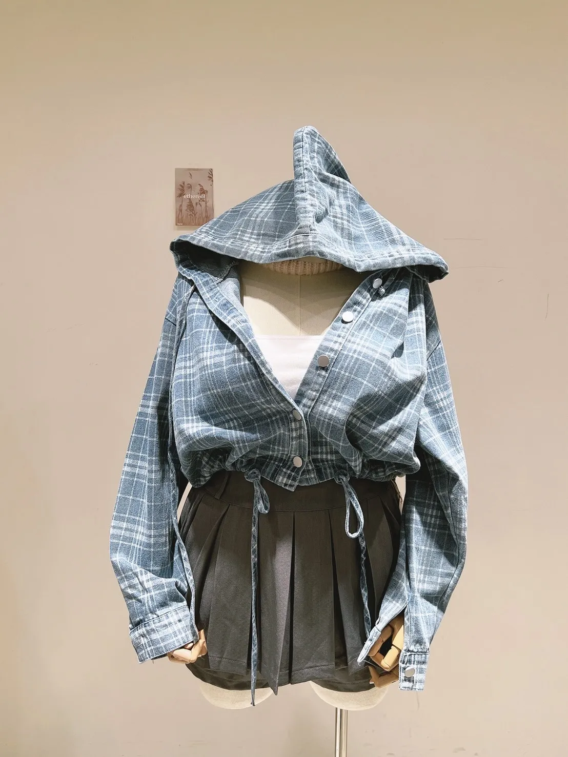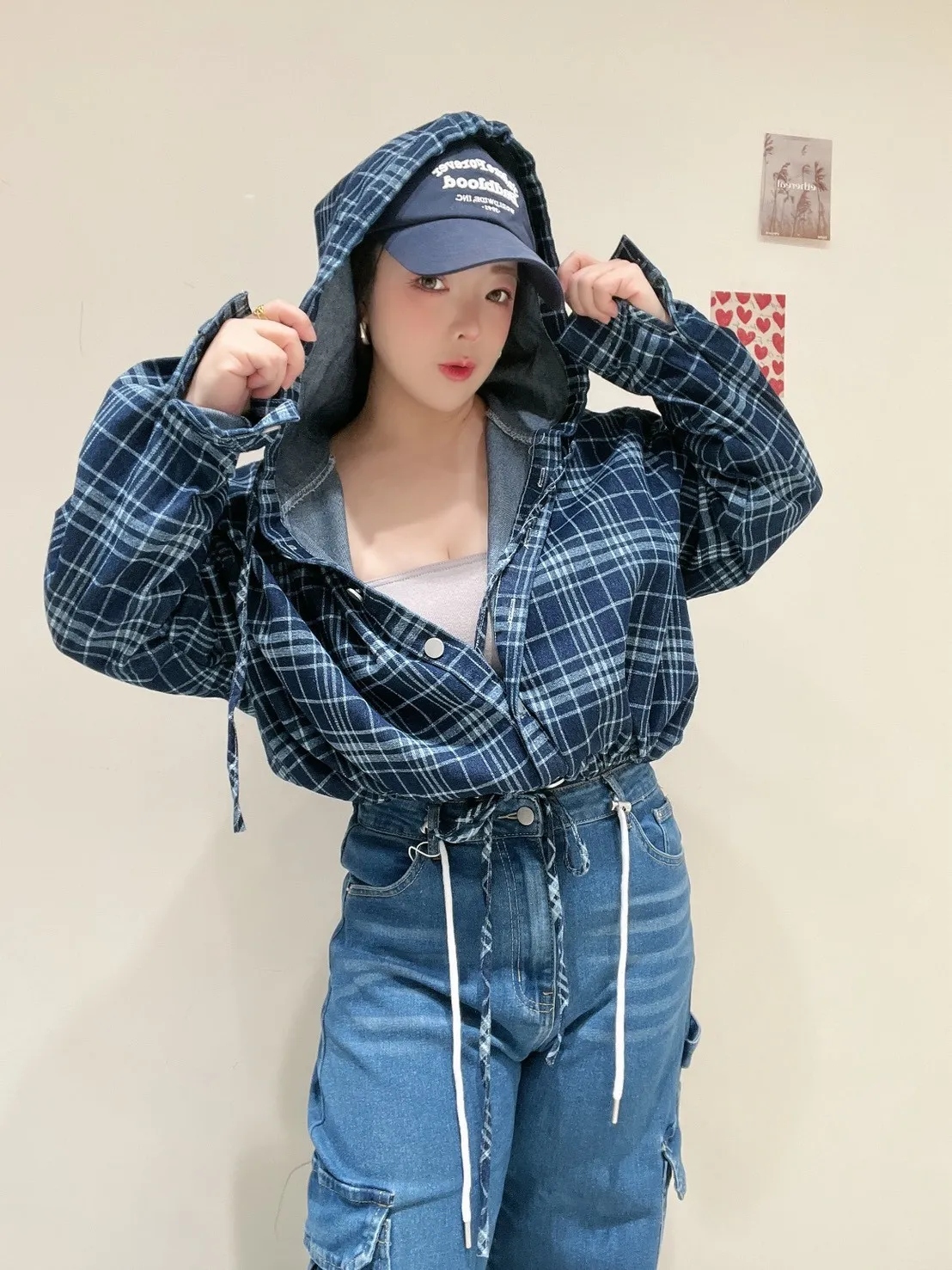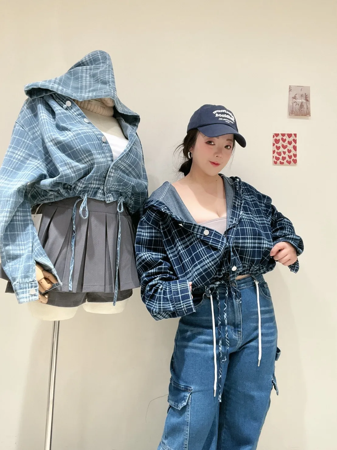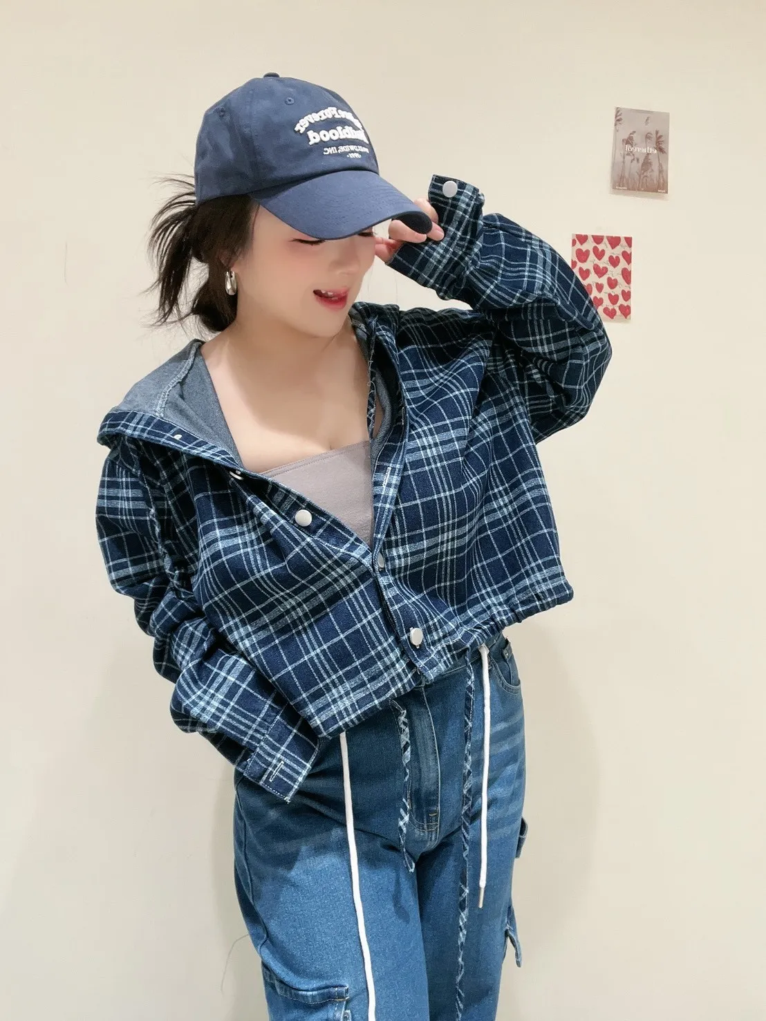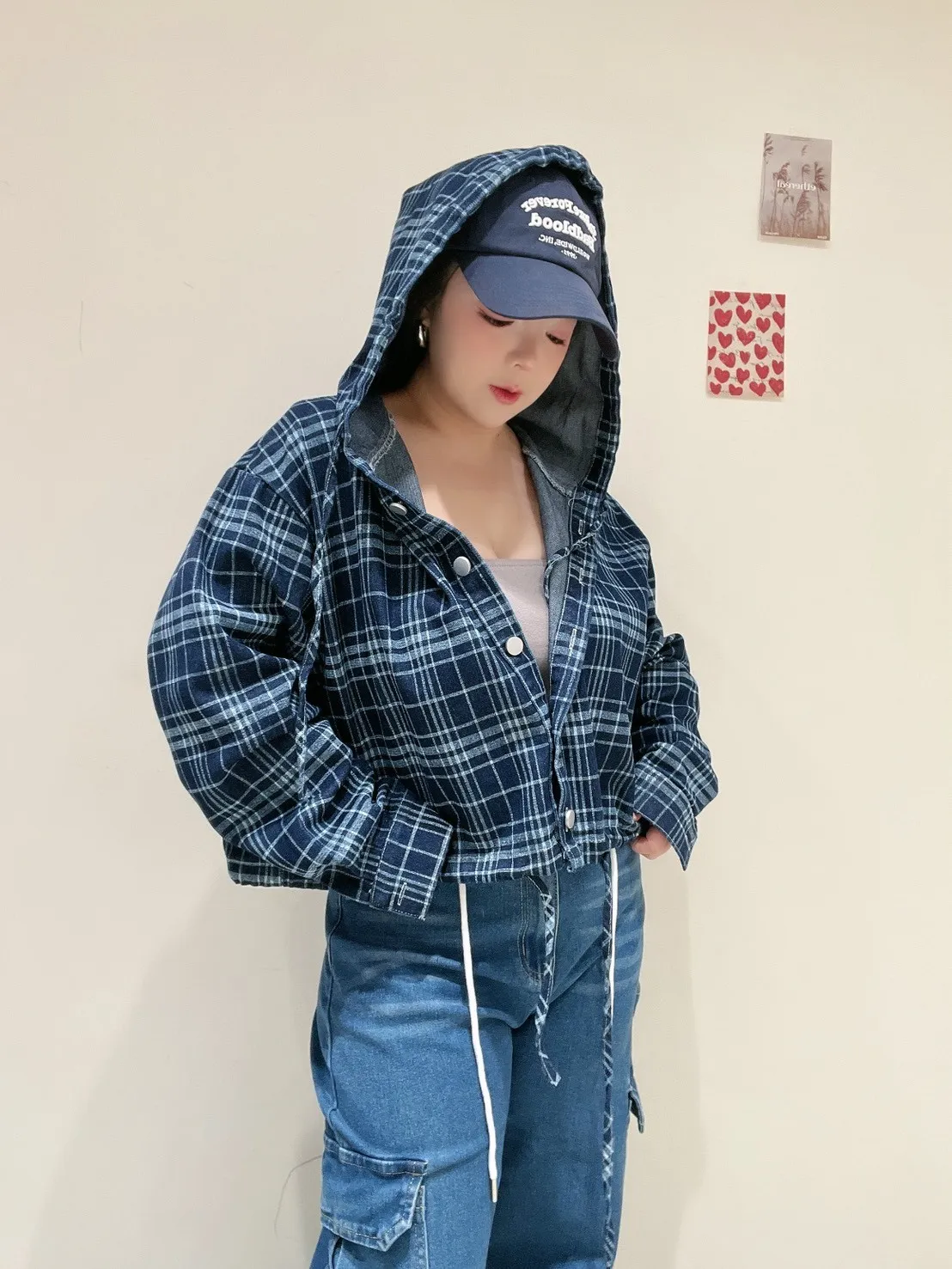 格紋設計結合連帽元素,休閒中帶點個性,穿起來不會無聊。