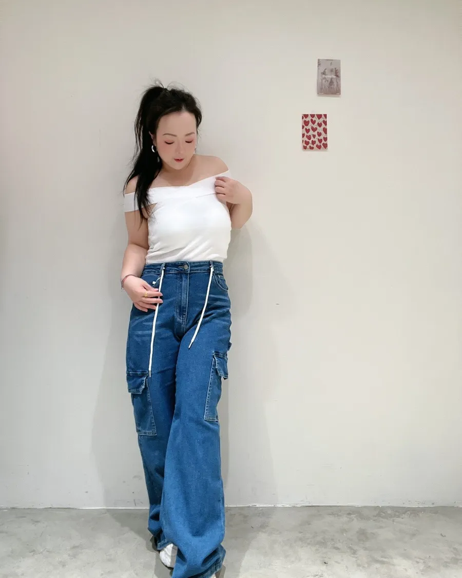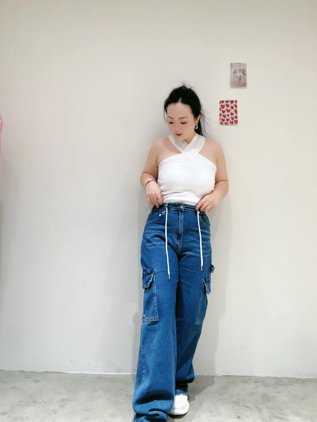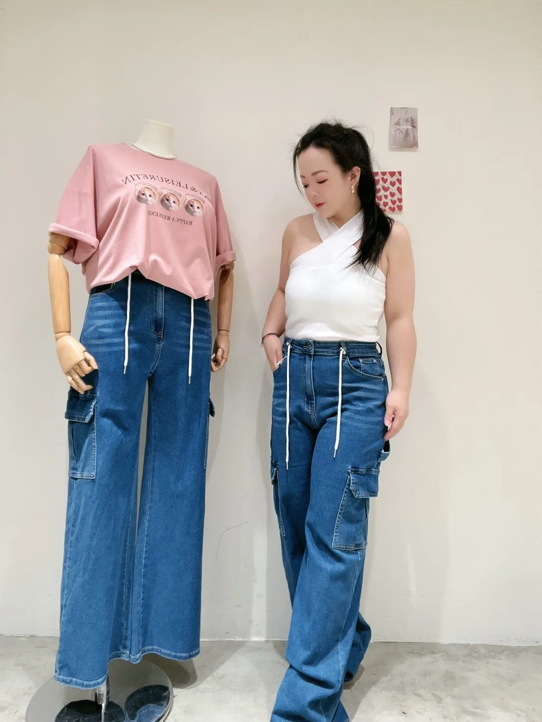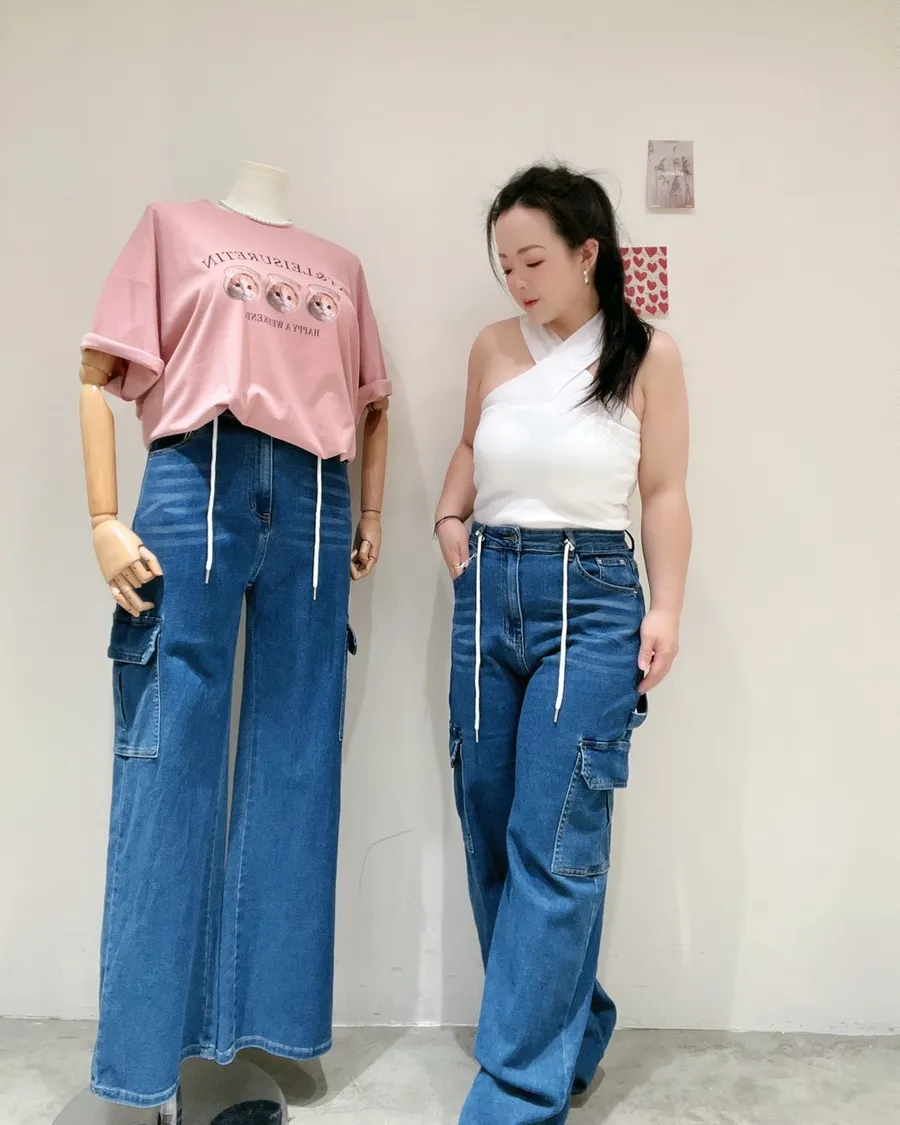 抽繩設計讓腰圍更貼合,搭配工裝口袋+寬褲版型,整體是隨性又有型的街頭感。