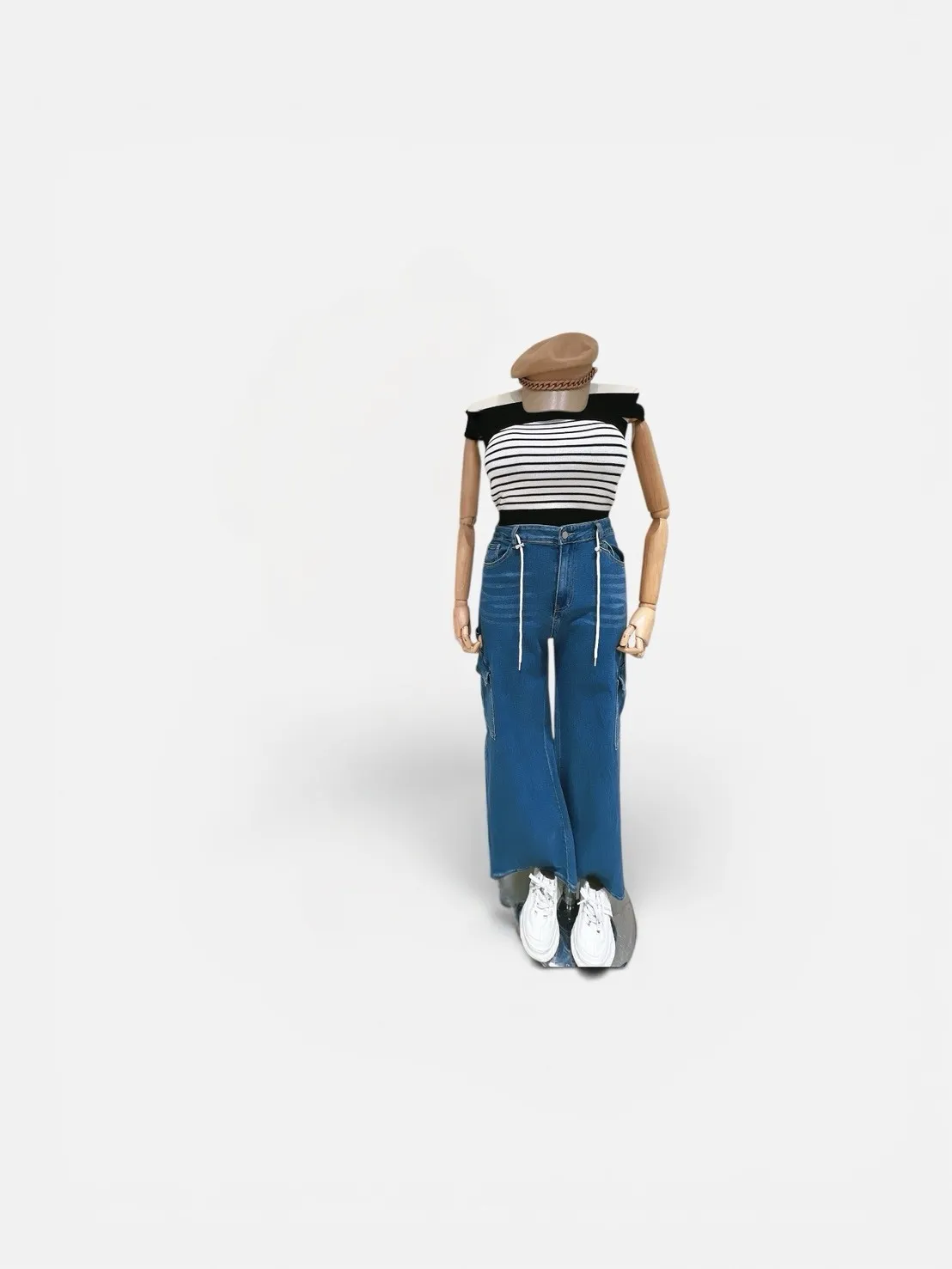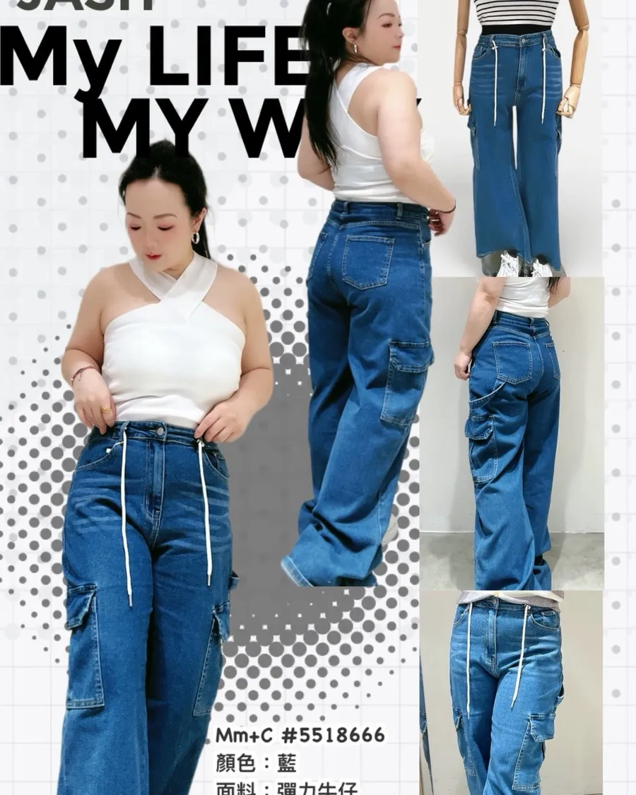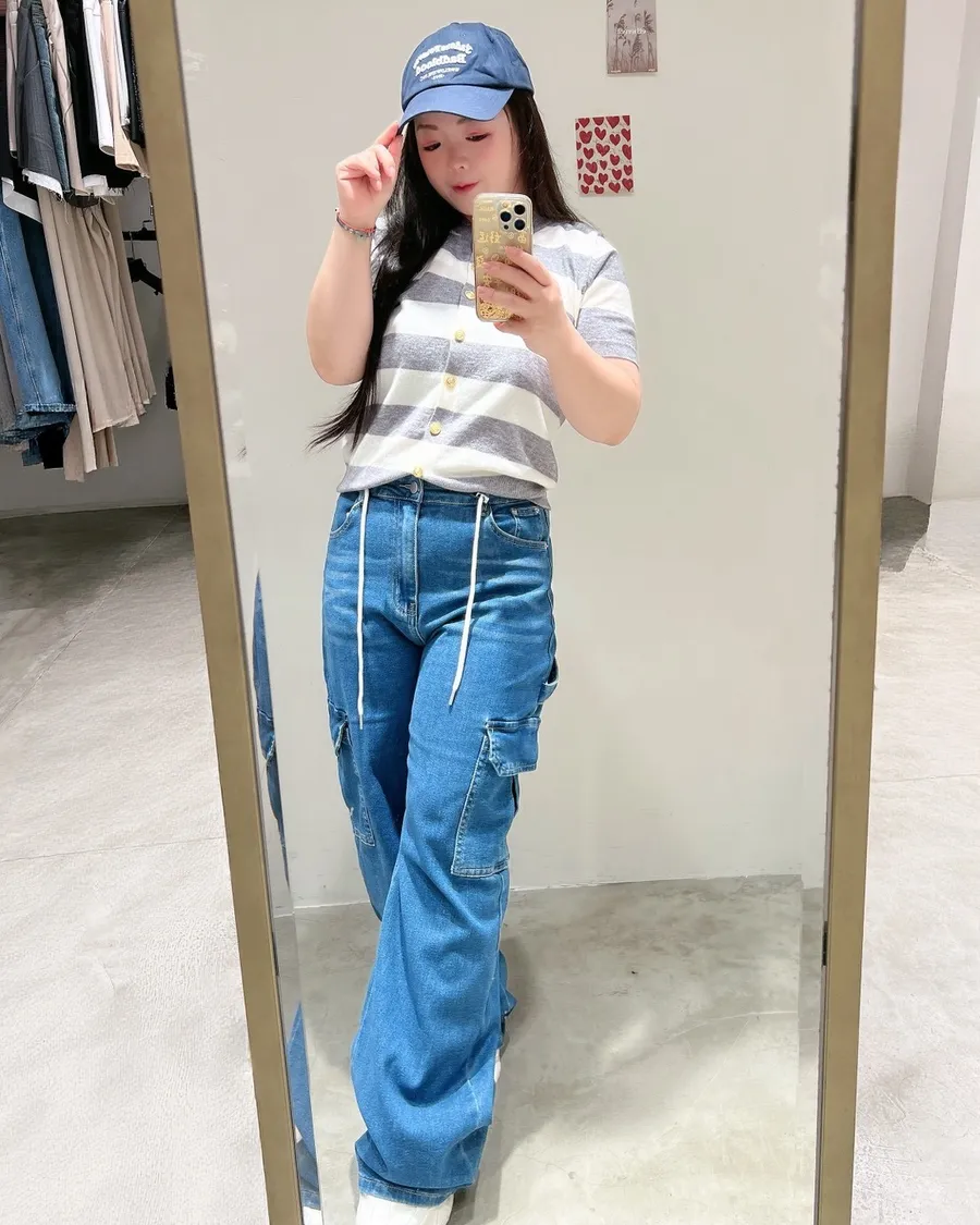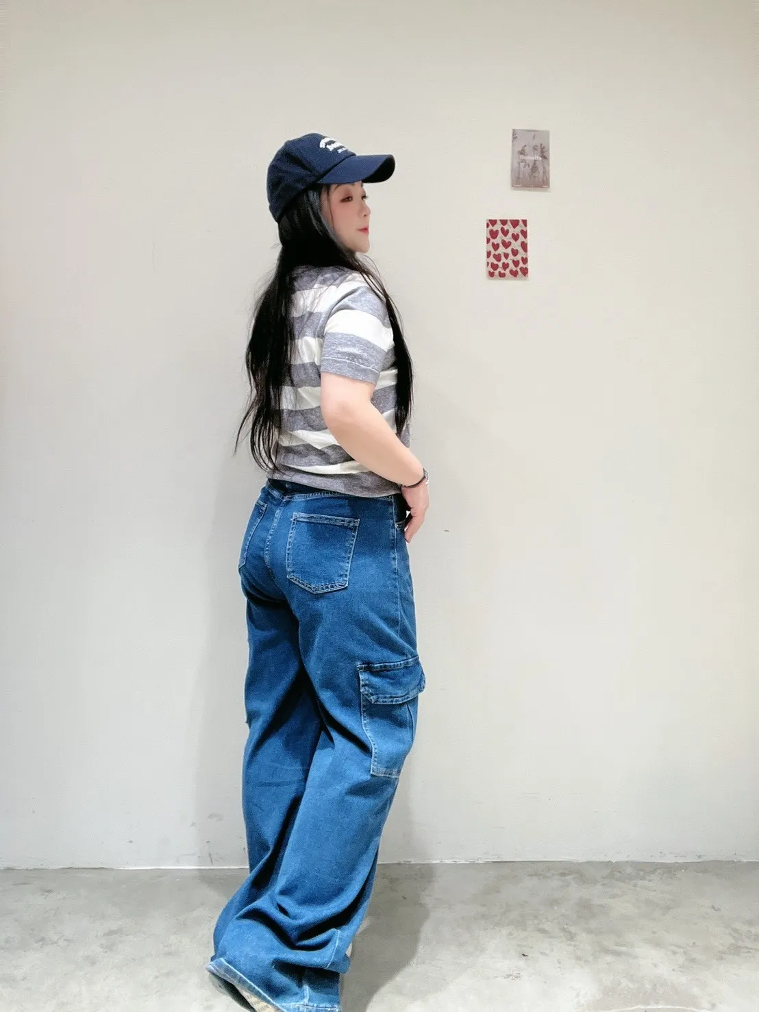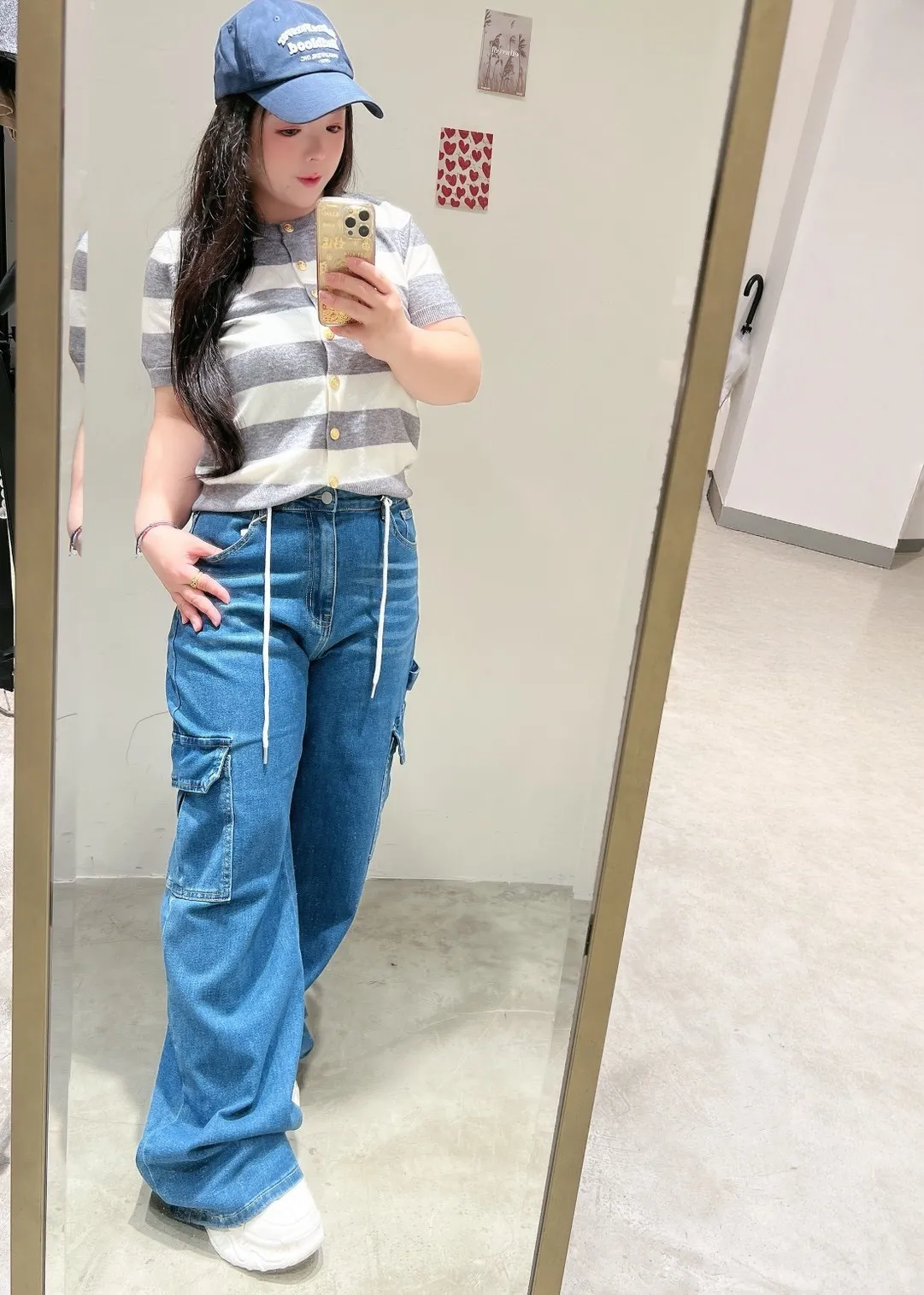 抽繩設計讓腰圍更貼合,搭配工裝口袋+寬褲版型,整體是隨性又有型的街頭感。