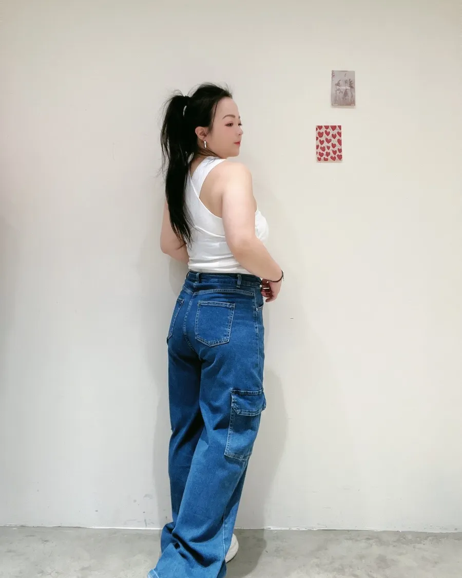 高腰+垂墜線條,從腰到腳順順往下,視覺直接拉長,輕鬆穿出大長腿比例。