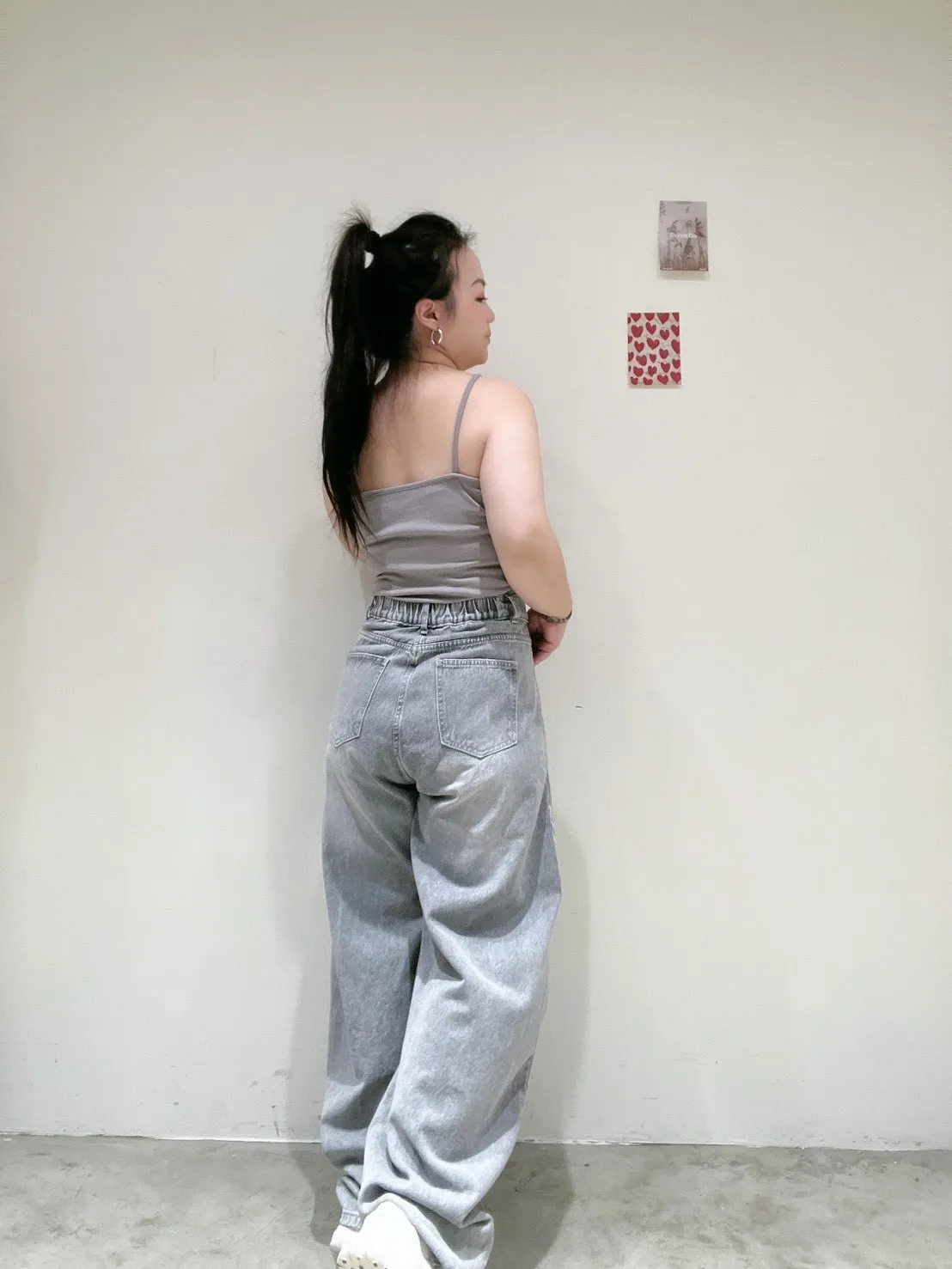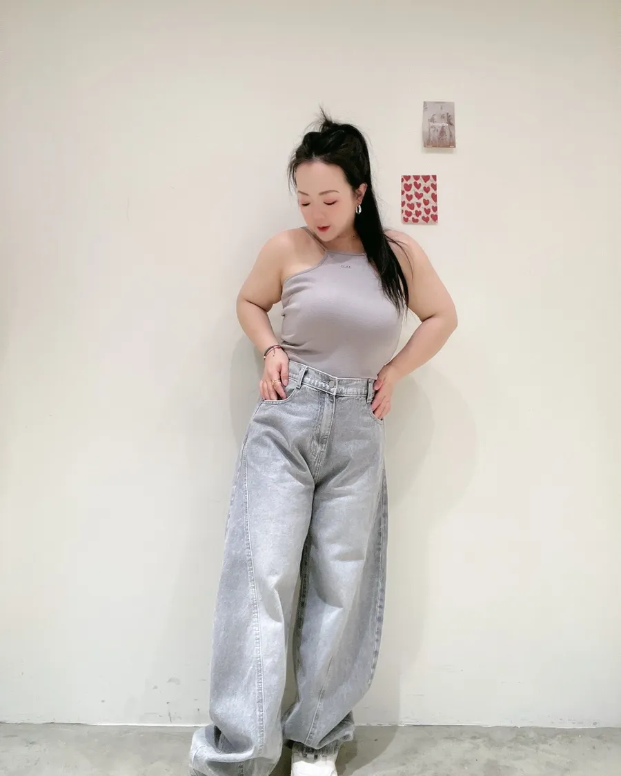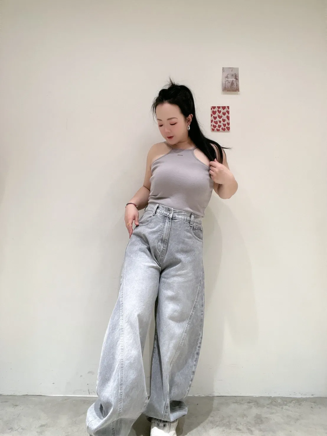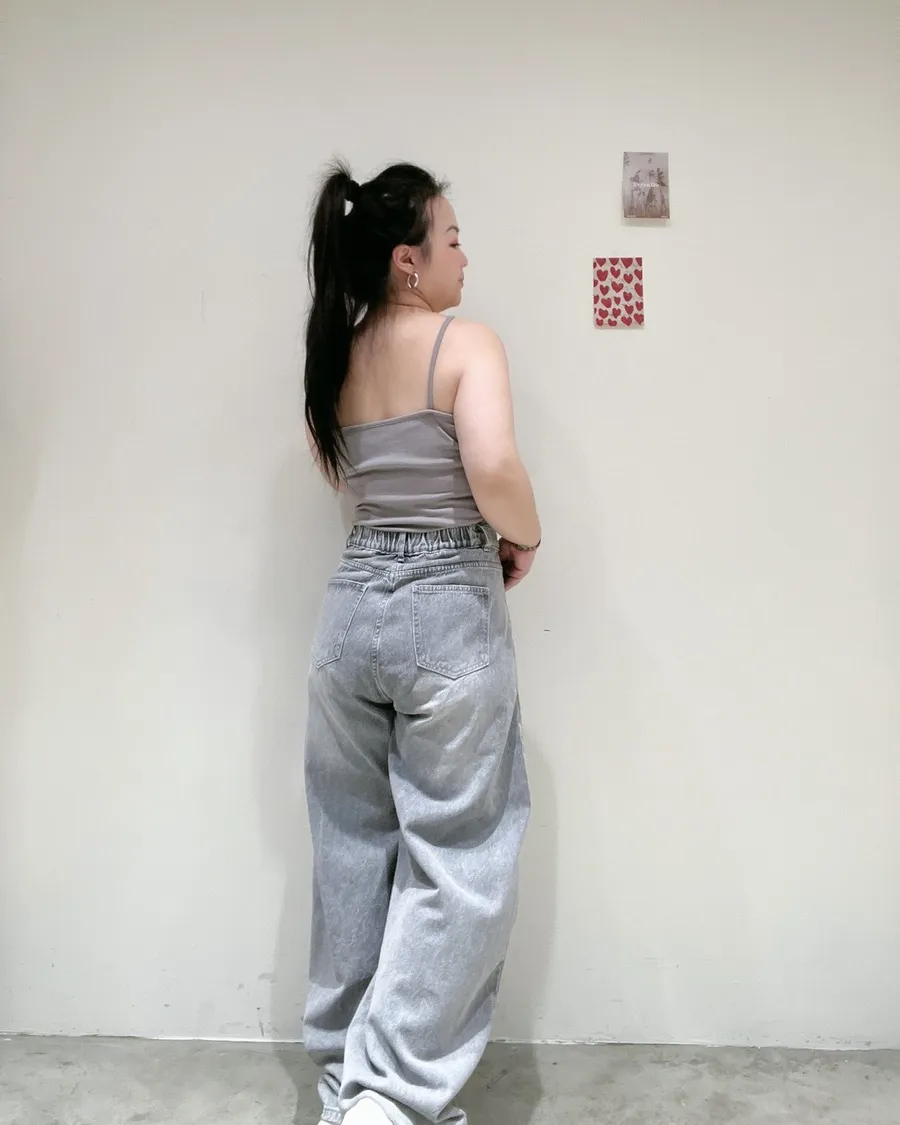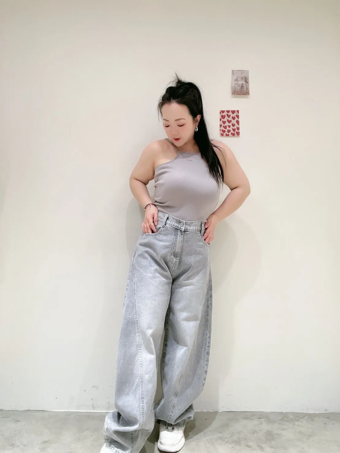 高腰版型+寬褲設計,不貼腿也不顯壯,是棉花糖女孩一定要收的一條顯瘦牛仔褲。