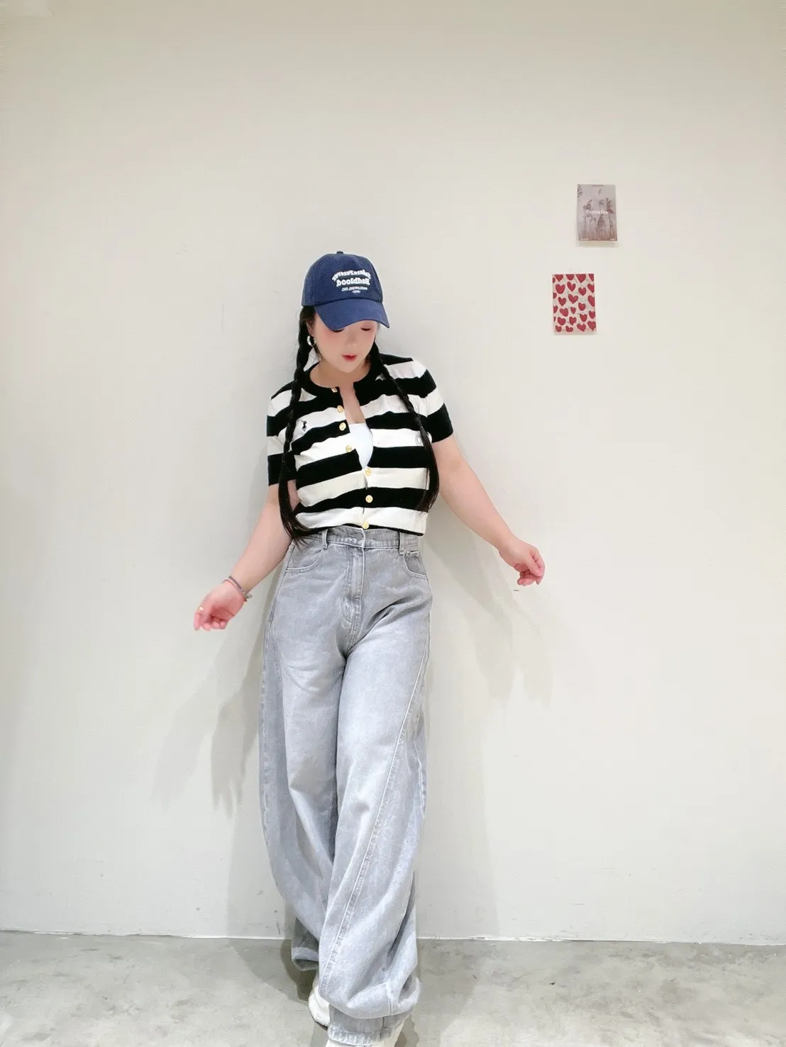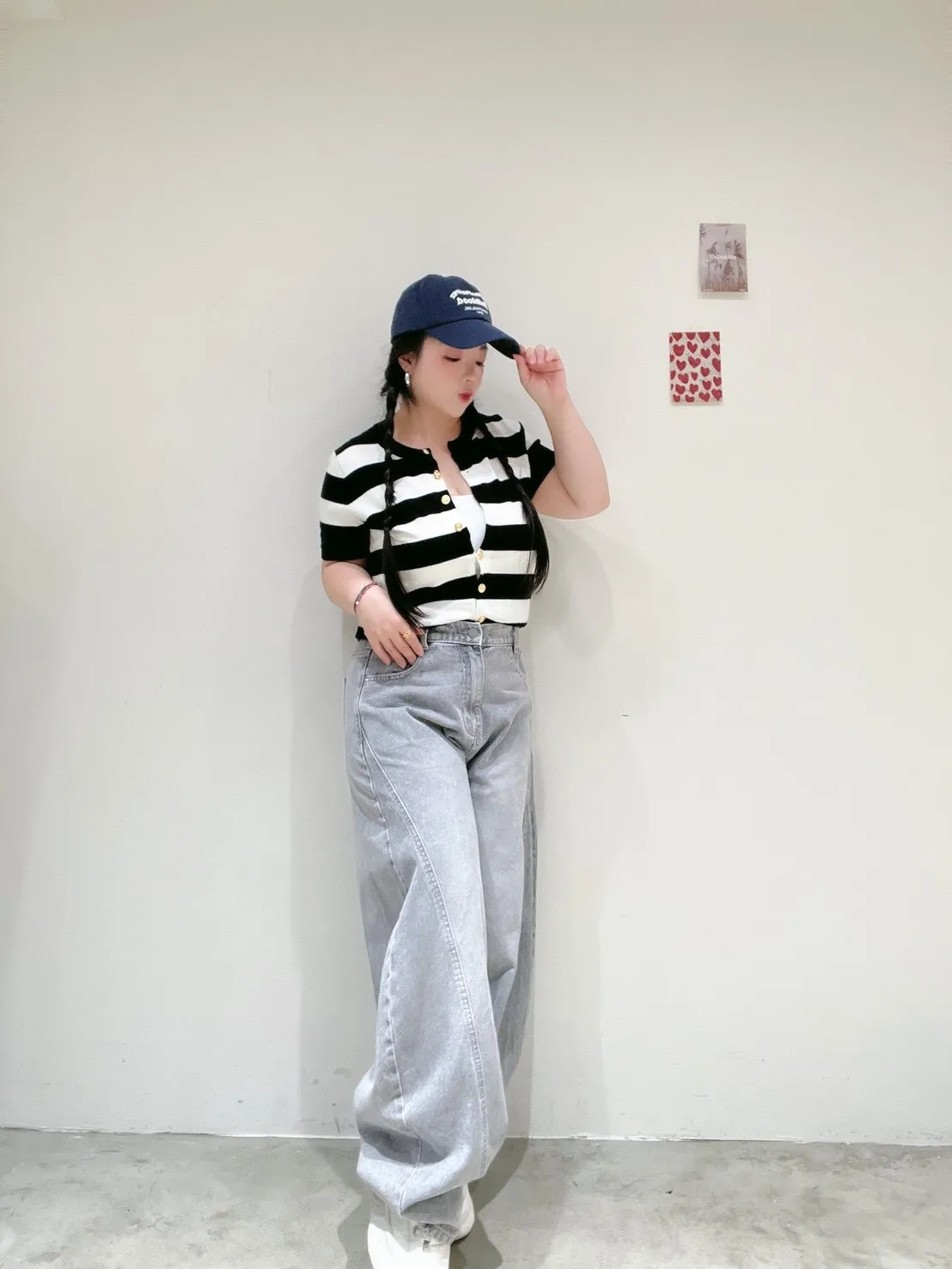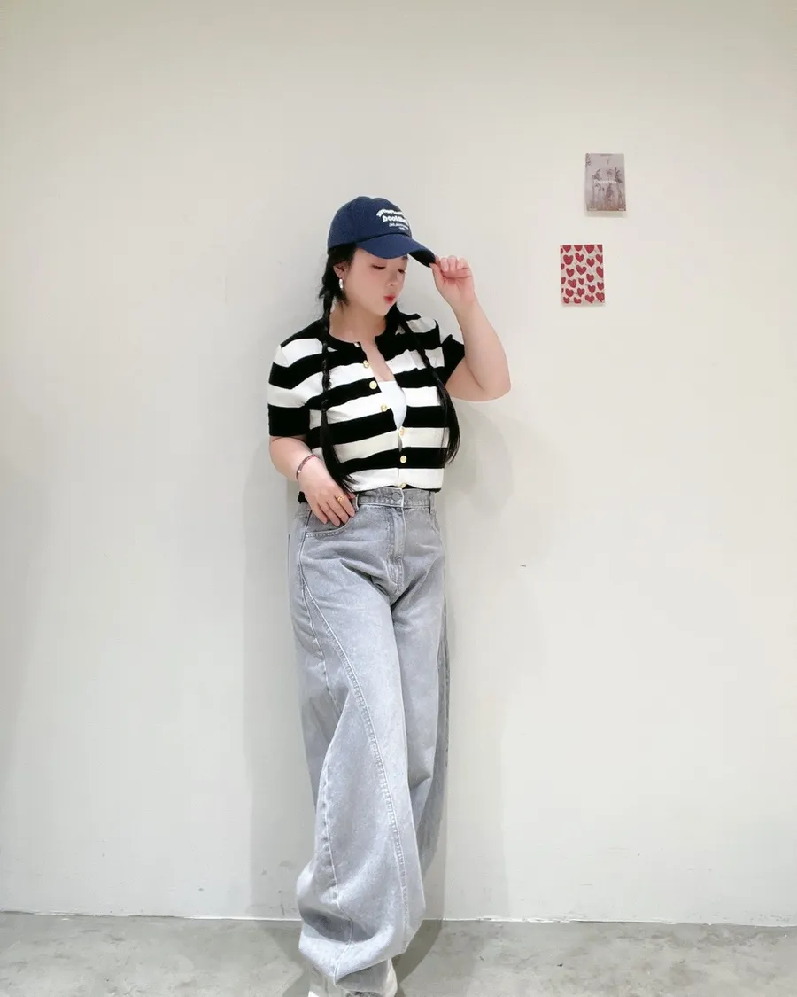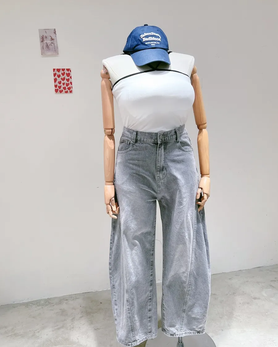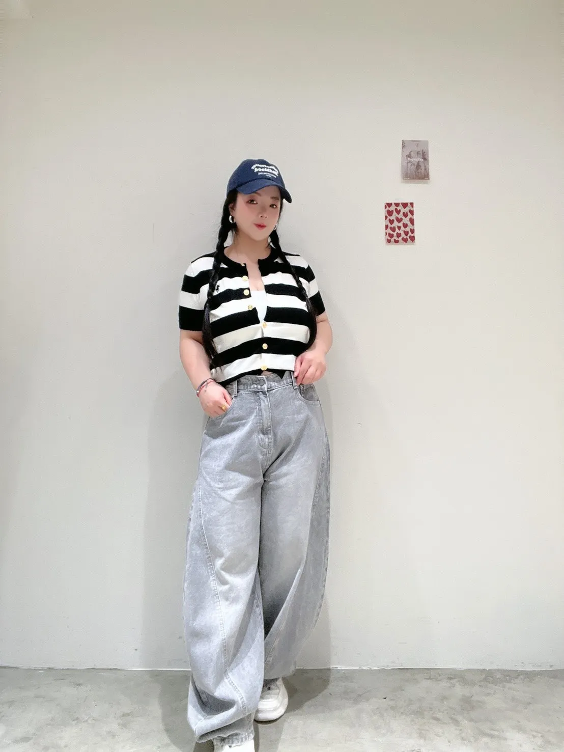 高腰版型+寬褲設計,不貼腿也不顯壯,是棉花糖女孩一定要收的一條顯瘦牛仔褲。