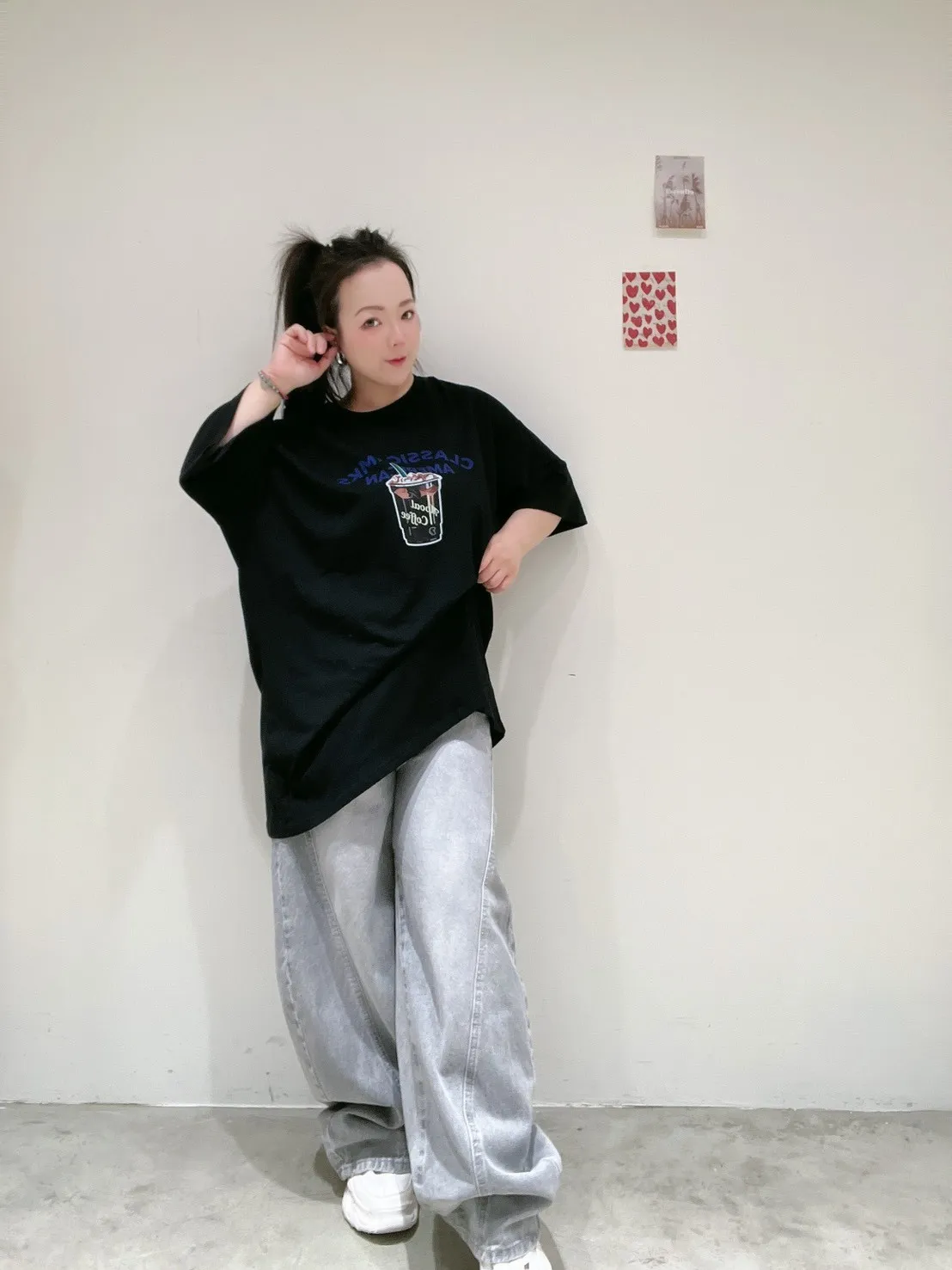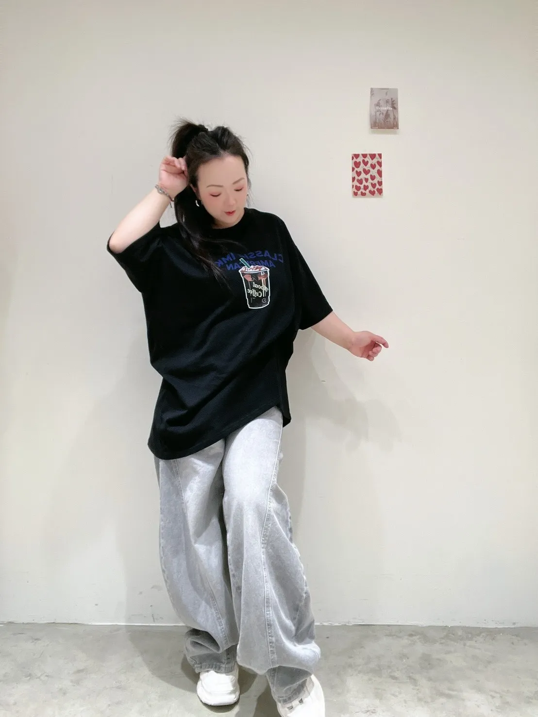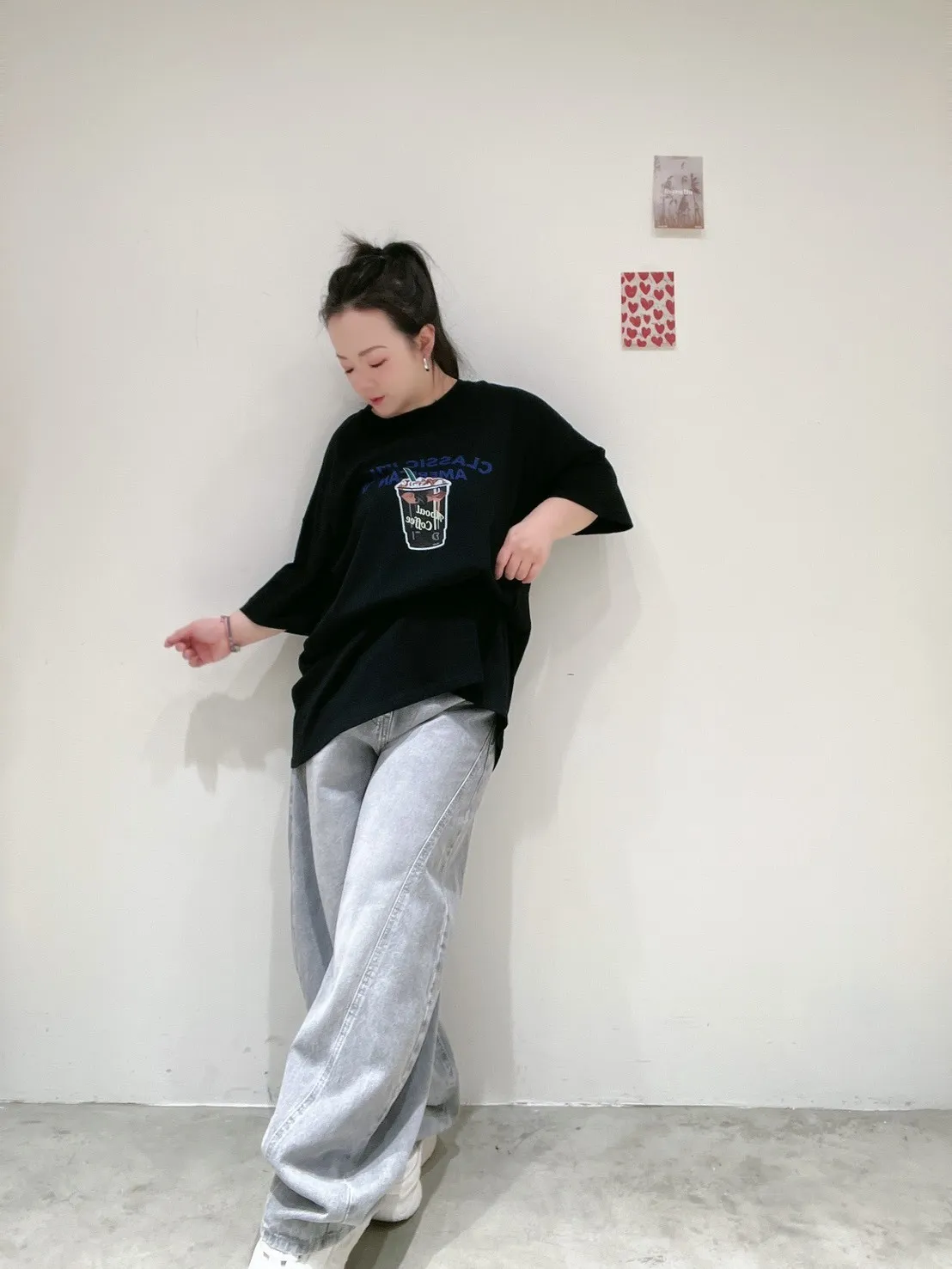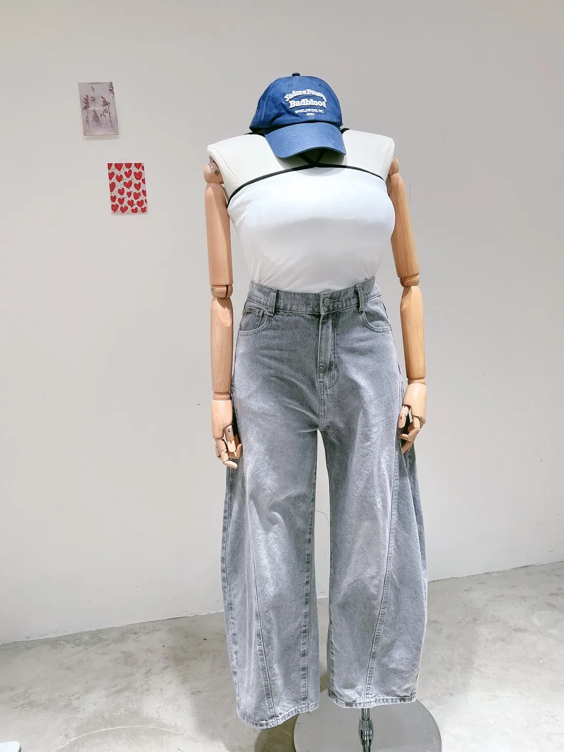 高腰版型+寬褲設計,不貼腿也不顯壯,是棉花糖女孩一定要收的一條顯瘦牛仔褲。