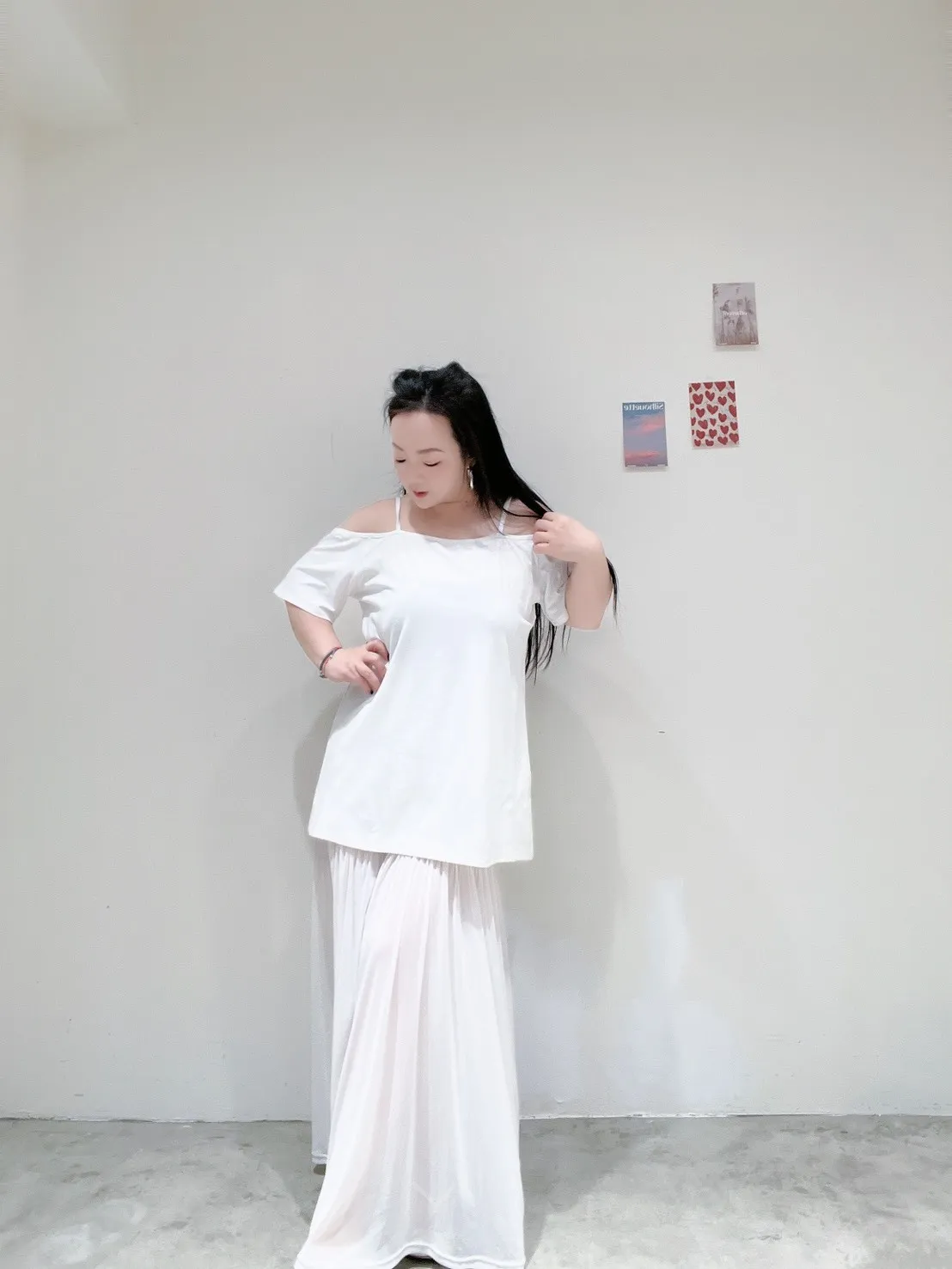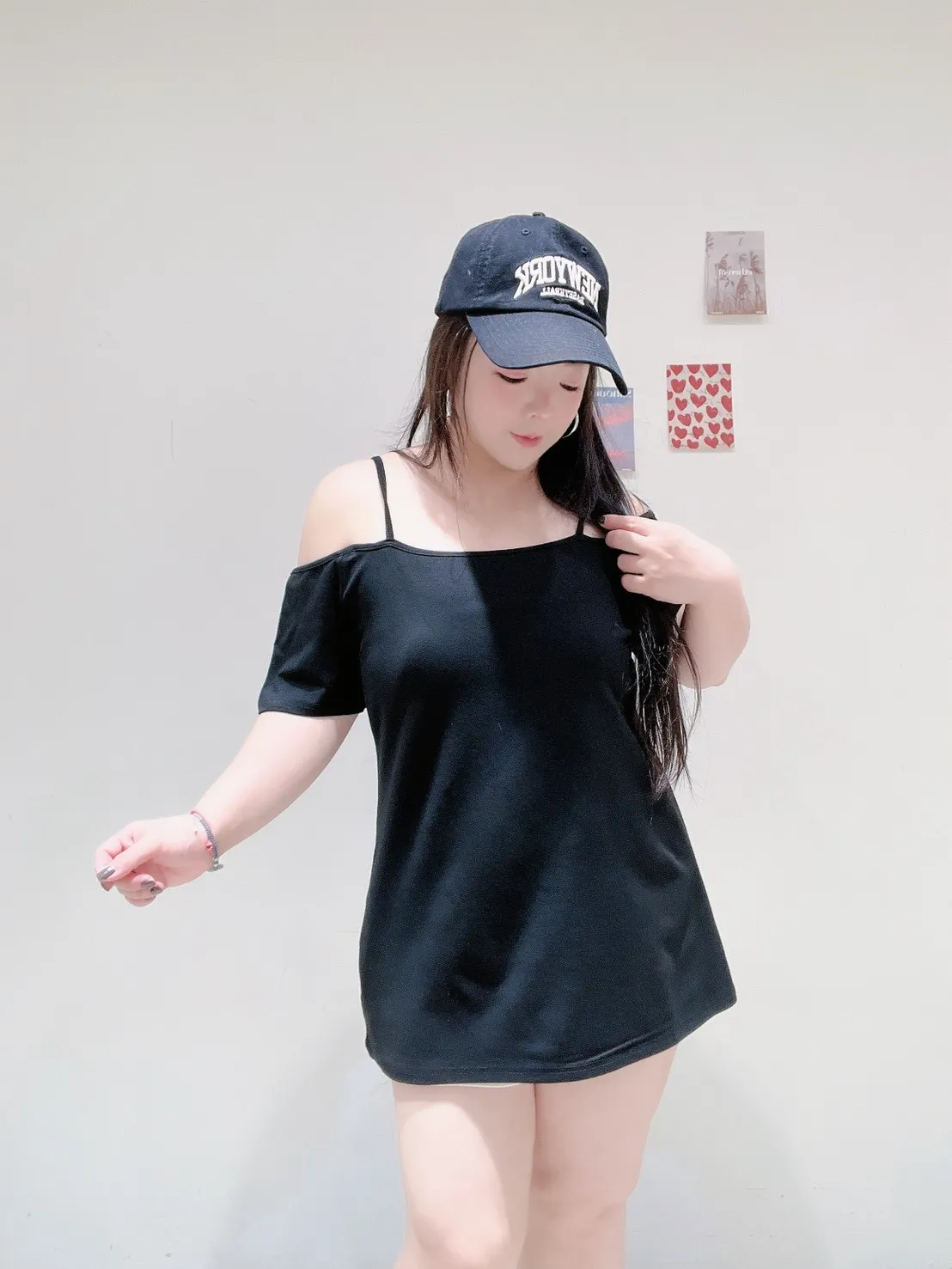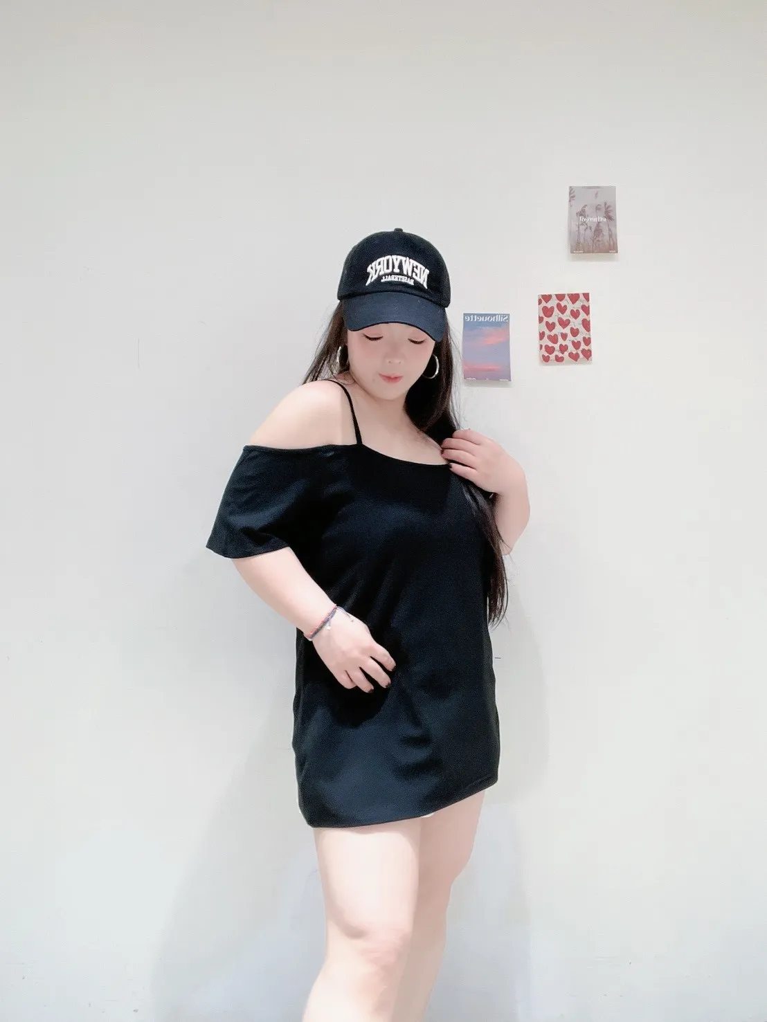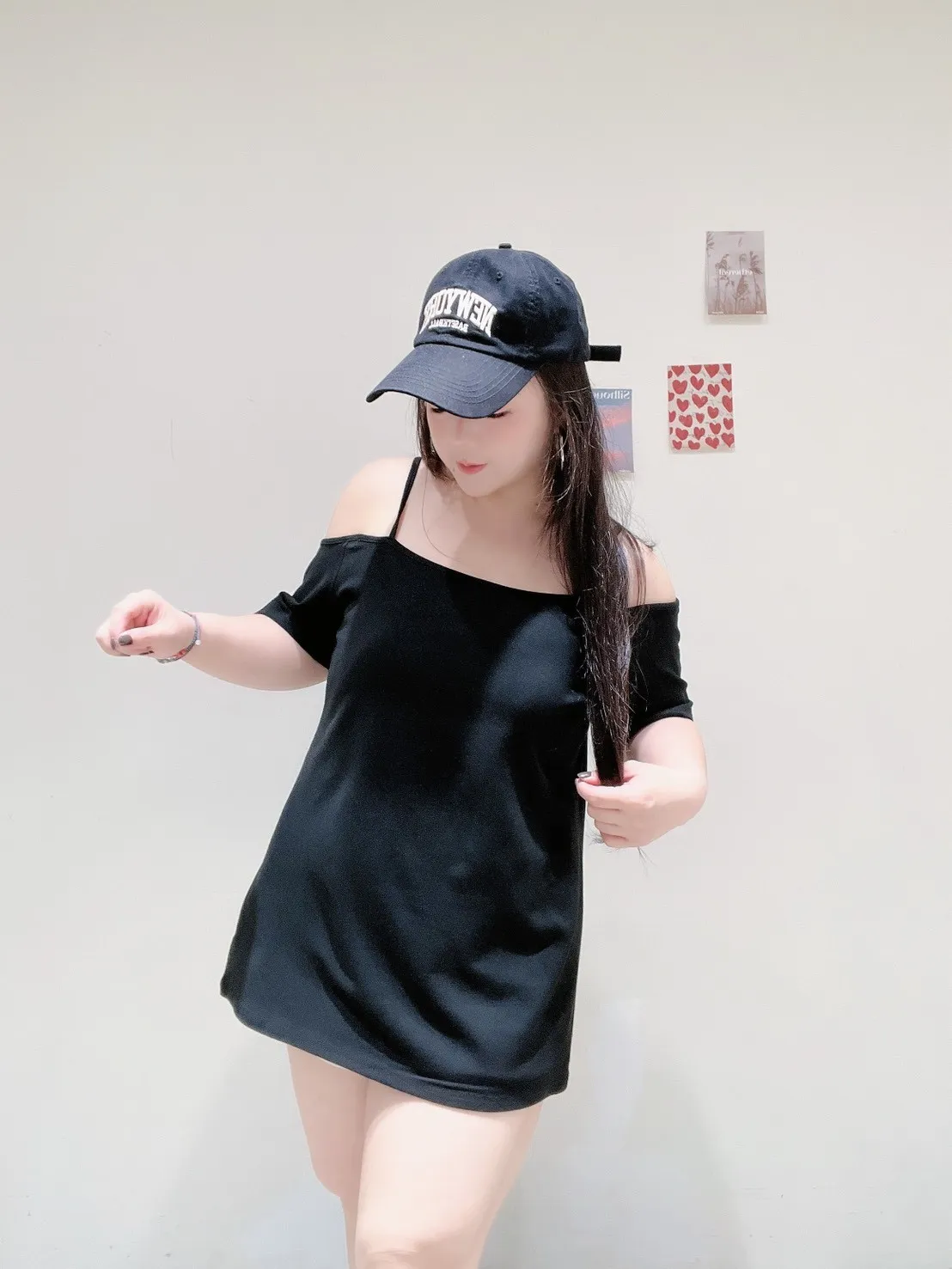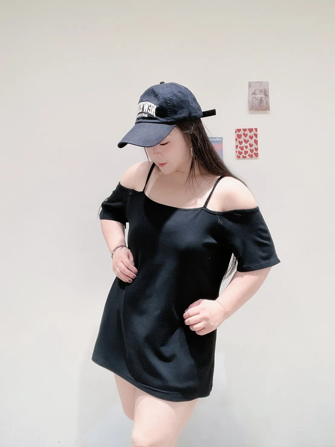 一字露肩設計,微露鎖骨線條,簡單就能帶出一點性感但不刻意。