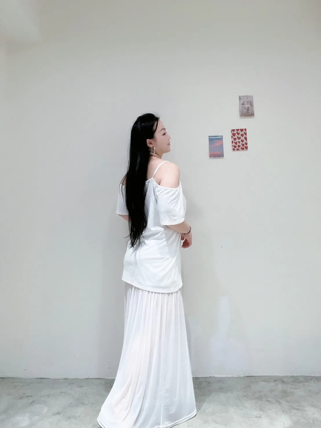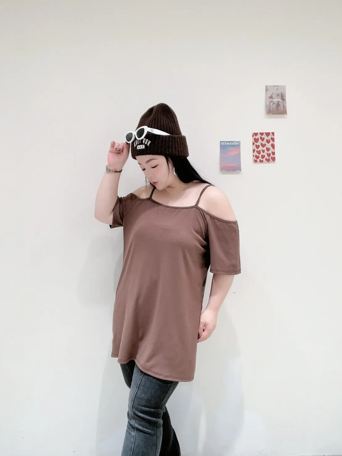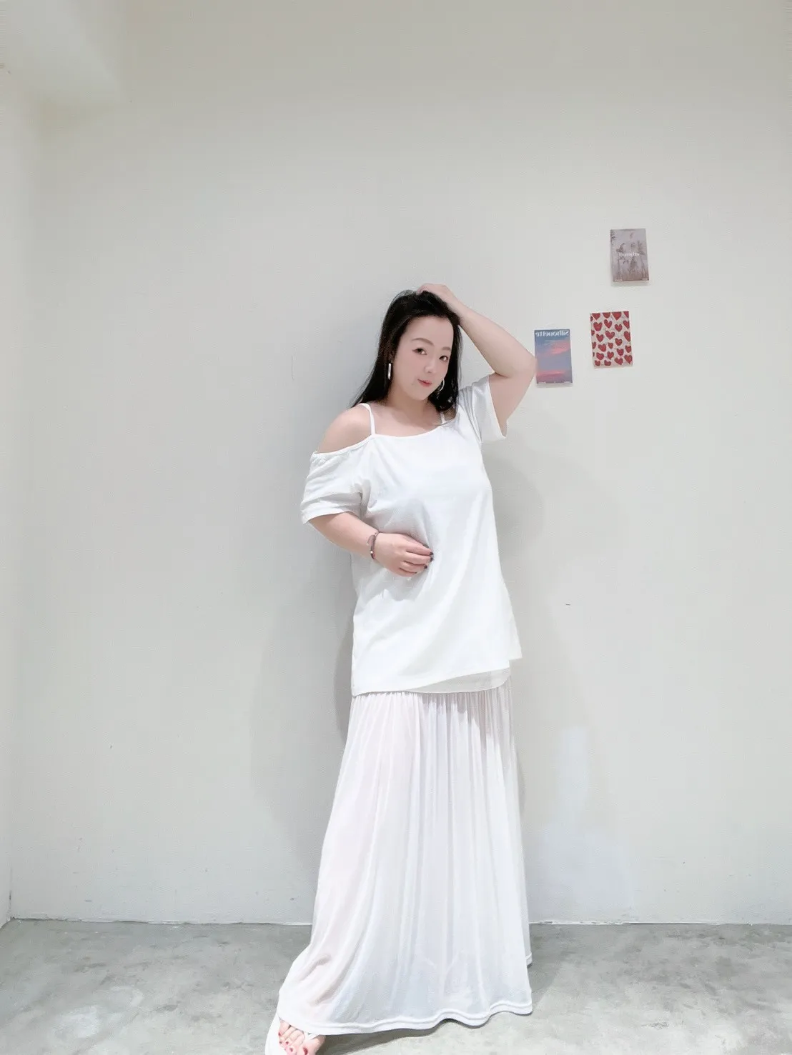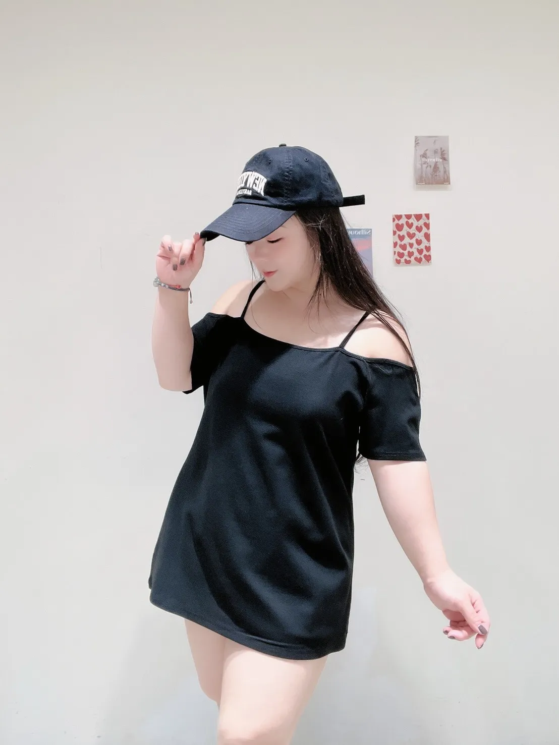 一字露肩設計,微露鎖骨線條,簡單就能帶出一點性感但不刻意。
