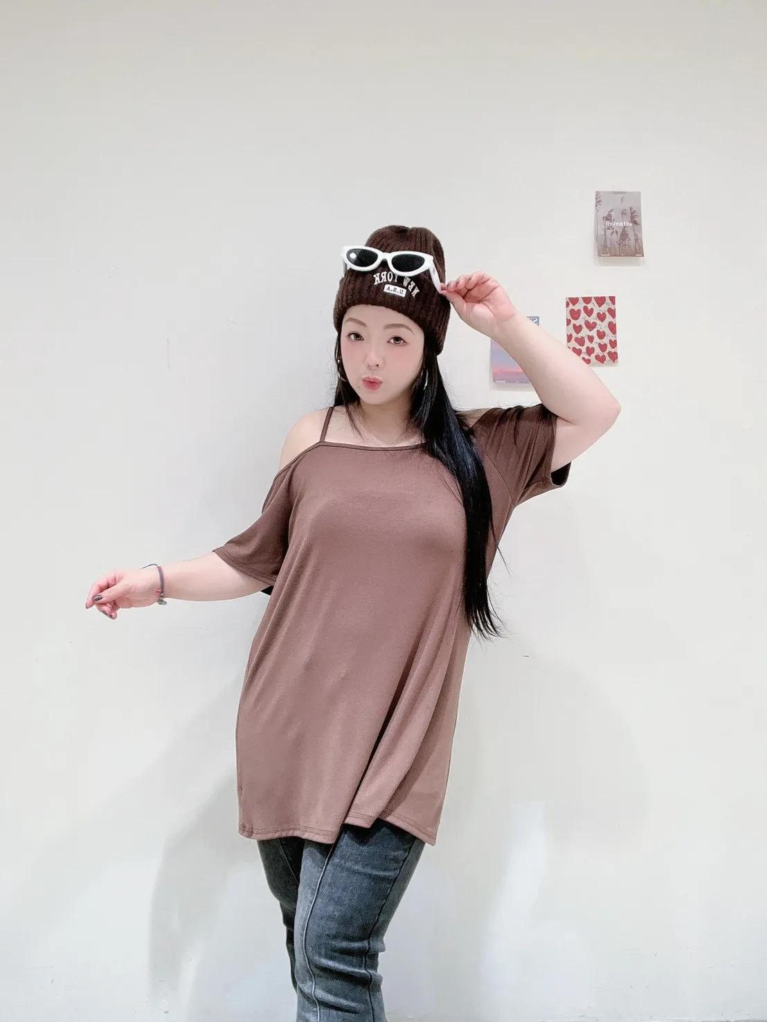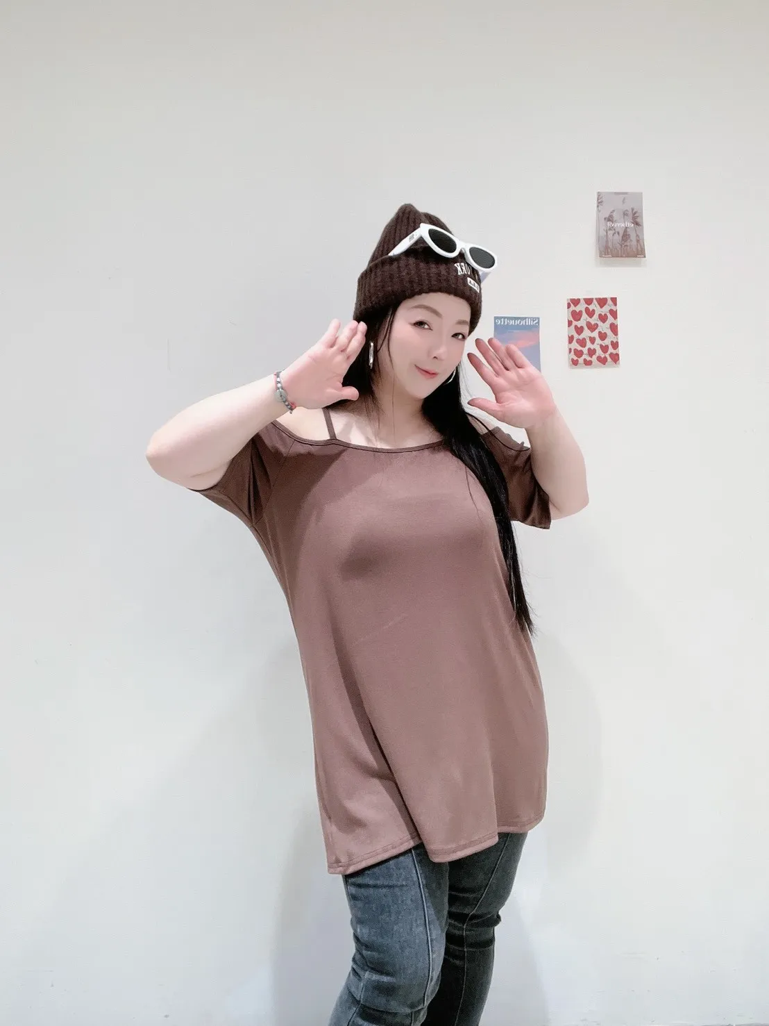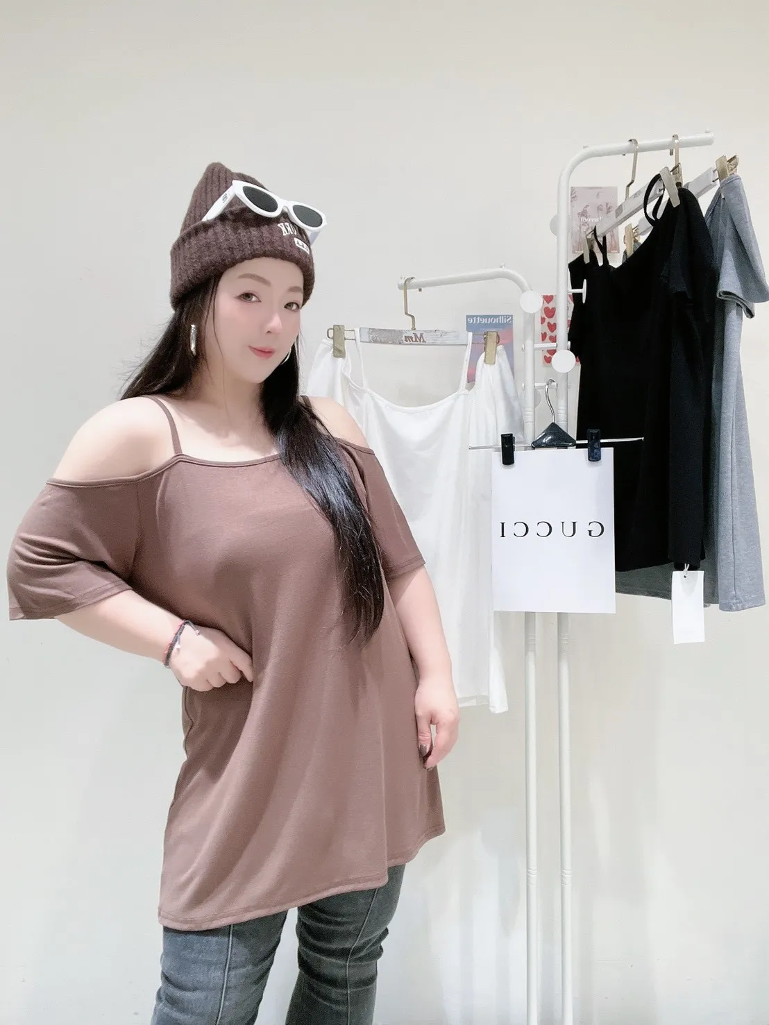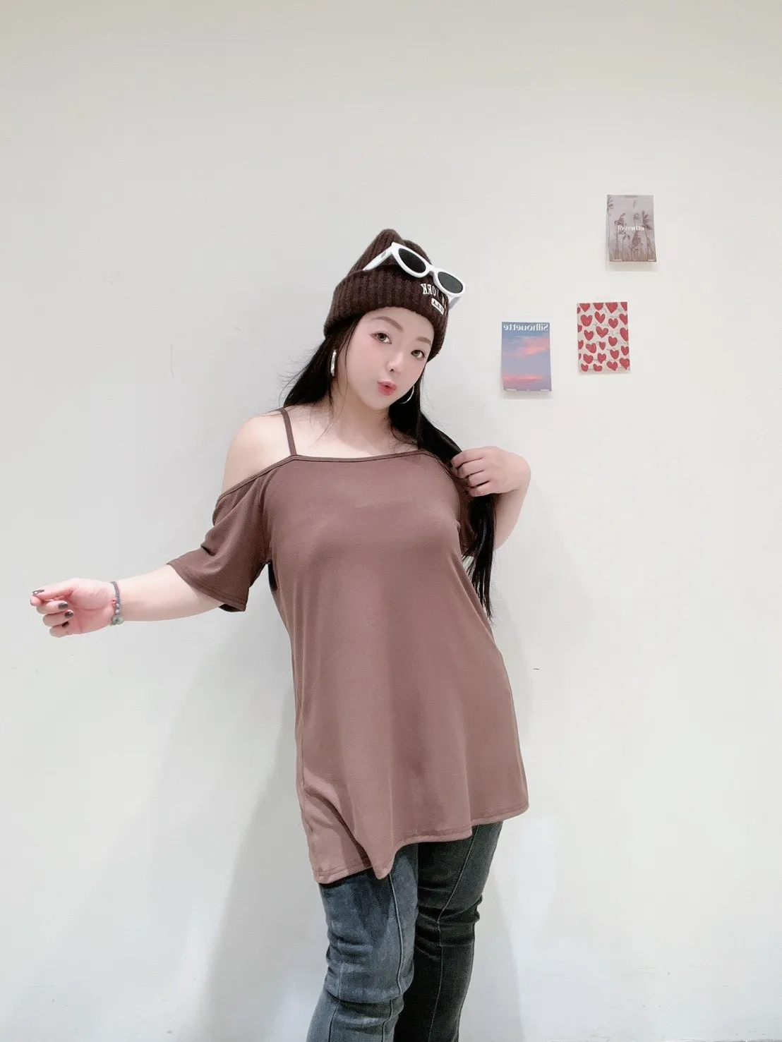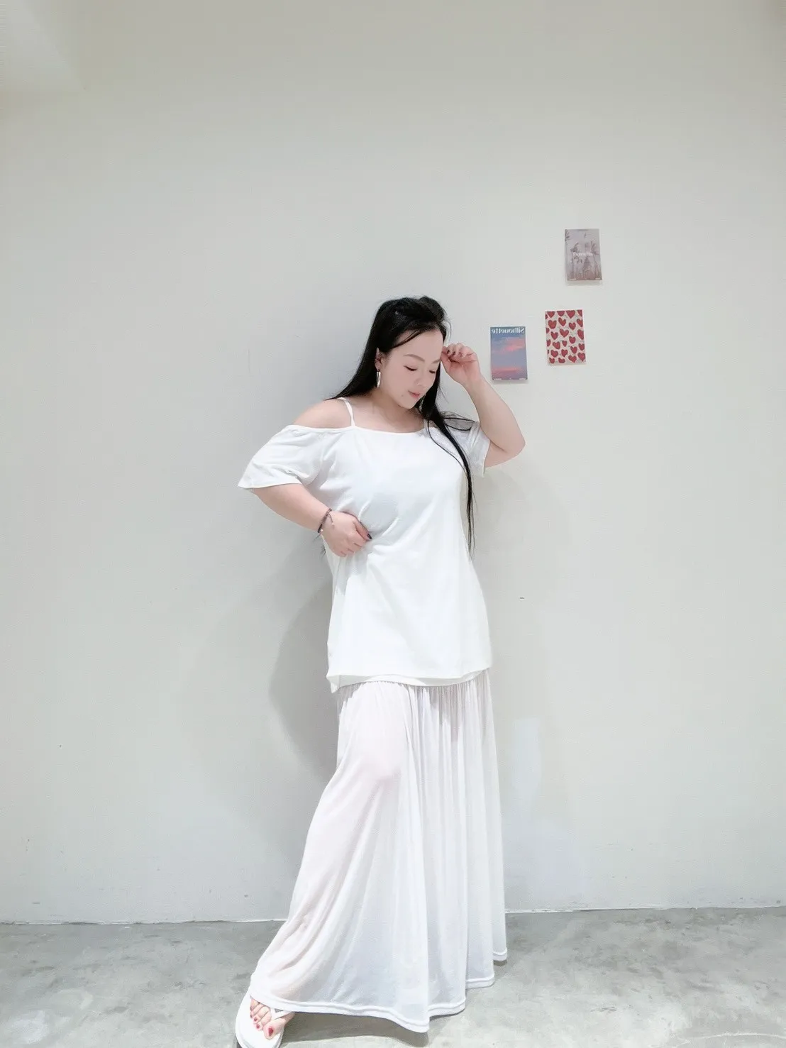 一字露肩設計,微露鎖骨線條,簡單就能帶出一點性感但不刻意。