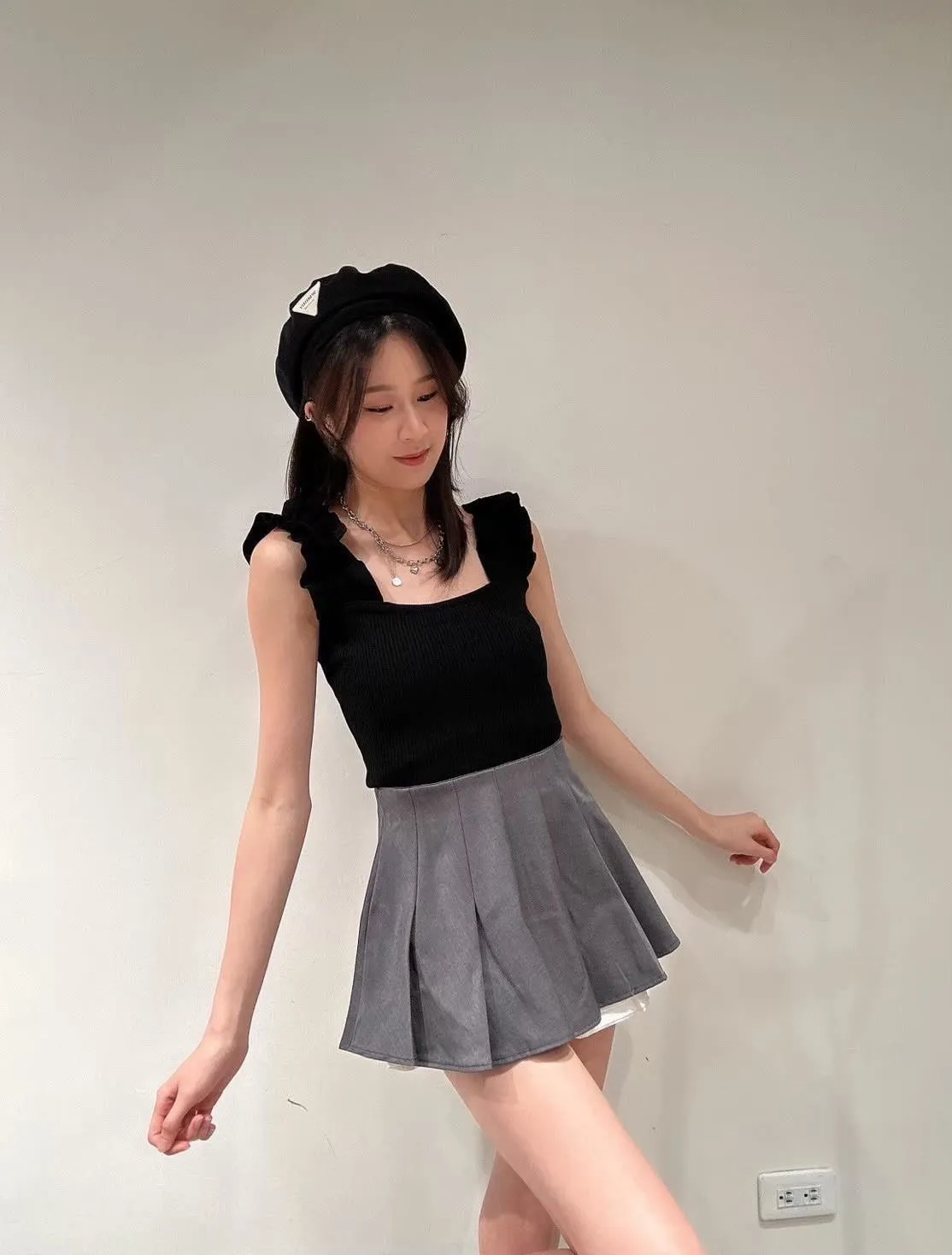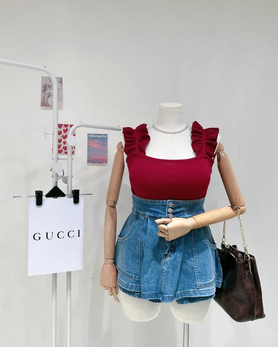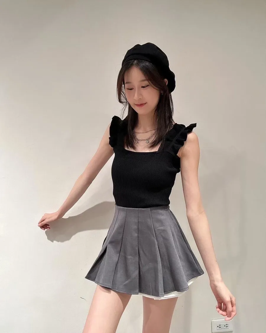 甜辣木耳肩帶針織背心