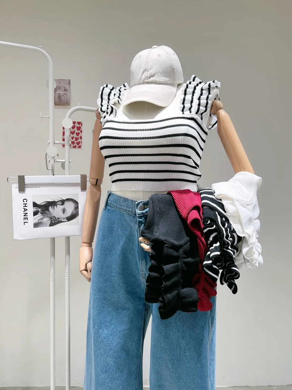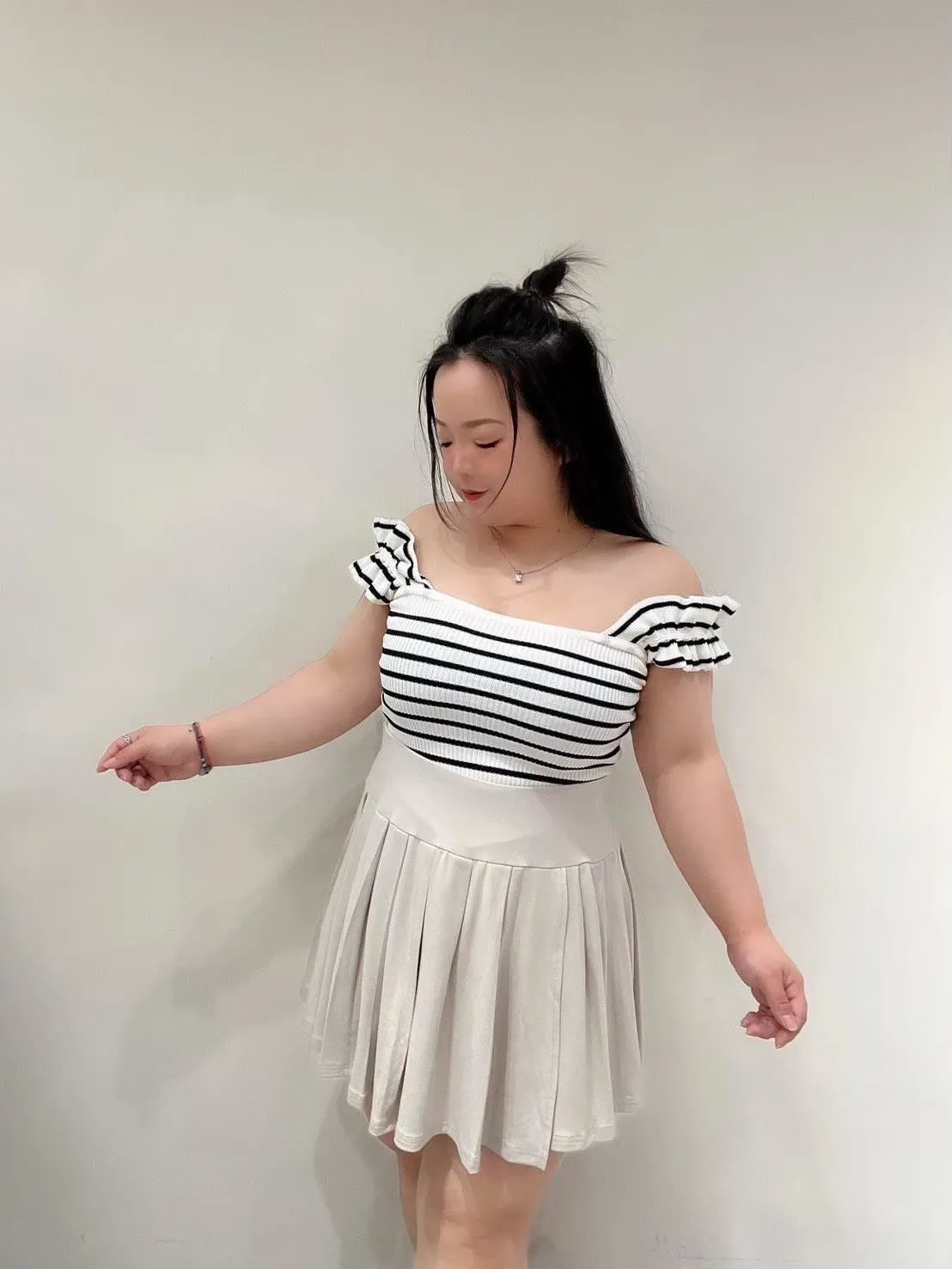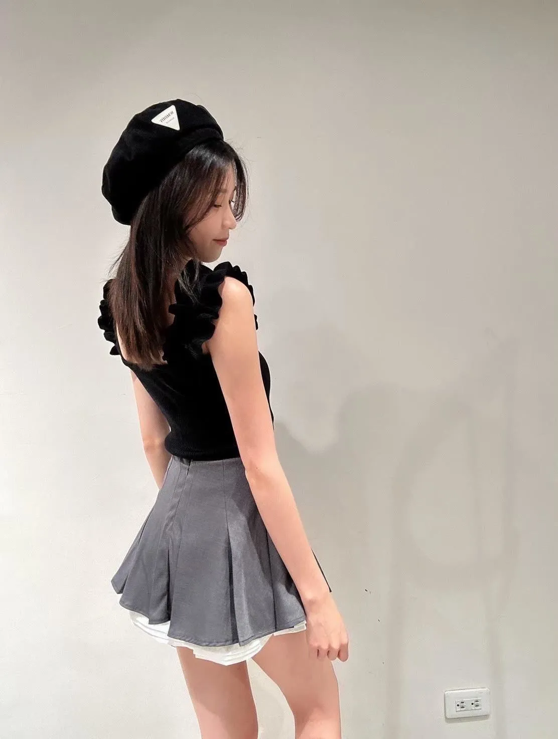 木耳邊肩帶設計,讓肩線看起來更柔和,搭配合身版型,自然勾出身形曲線但不會過度緊繃。