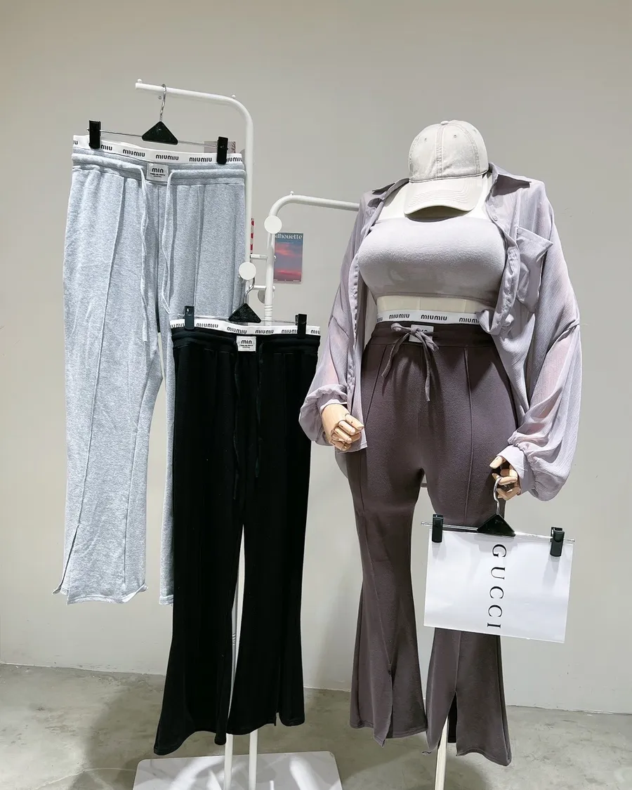 字母拼接休閒喇叭褲