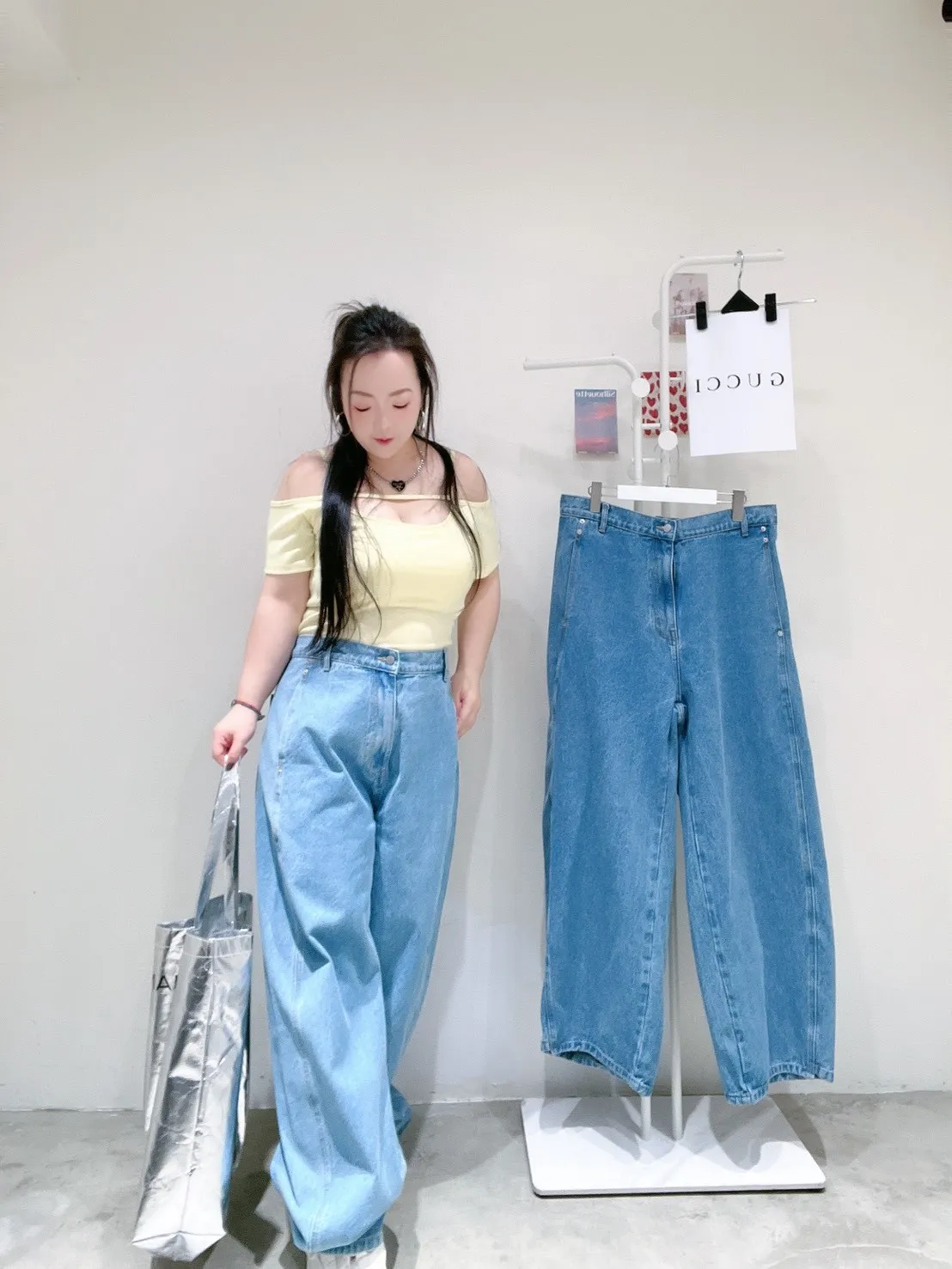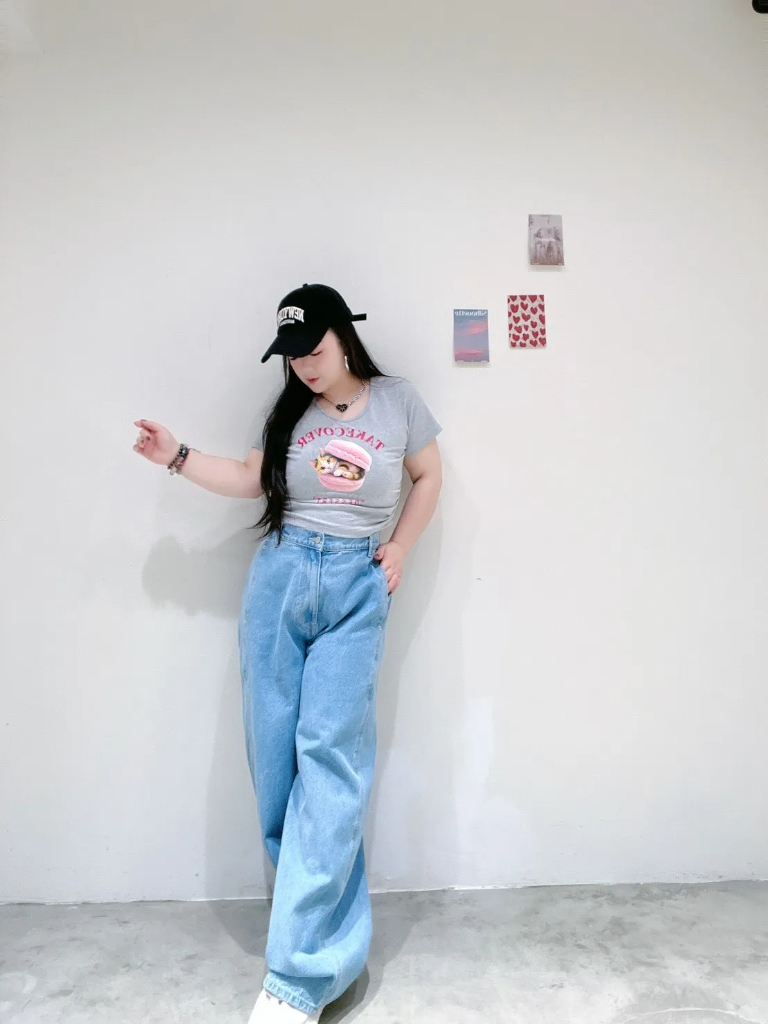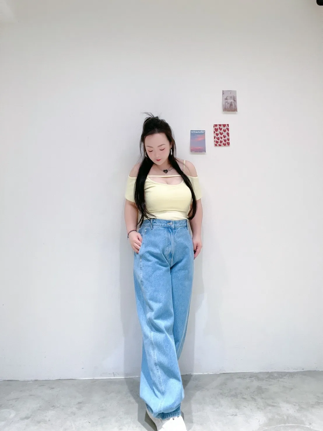 高腰+寬褲版型,比例直接拉長,搭短版或紮衣都超好看,是日常最實穿的一條牛仔褲。