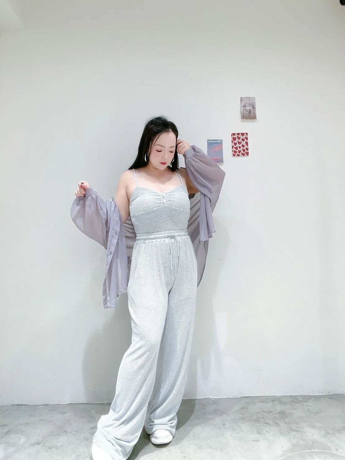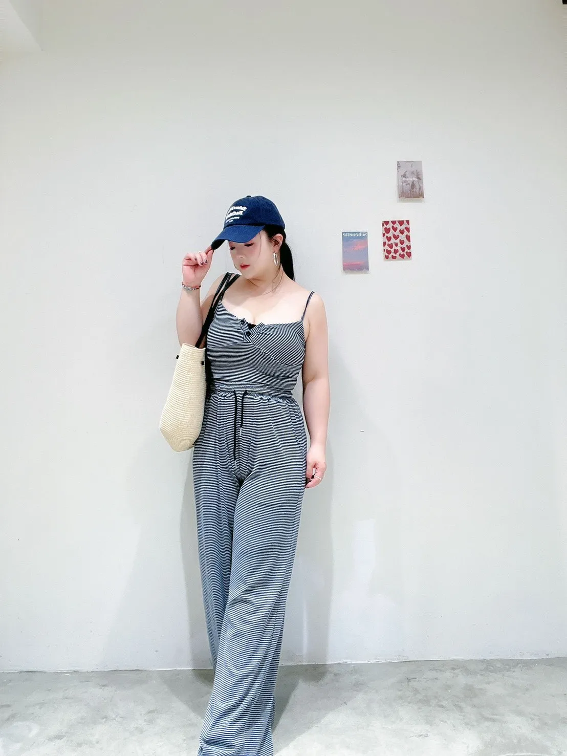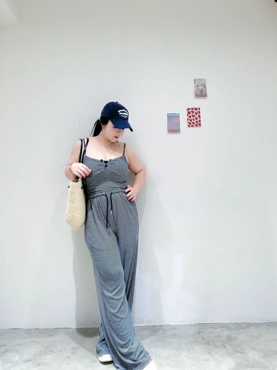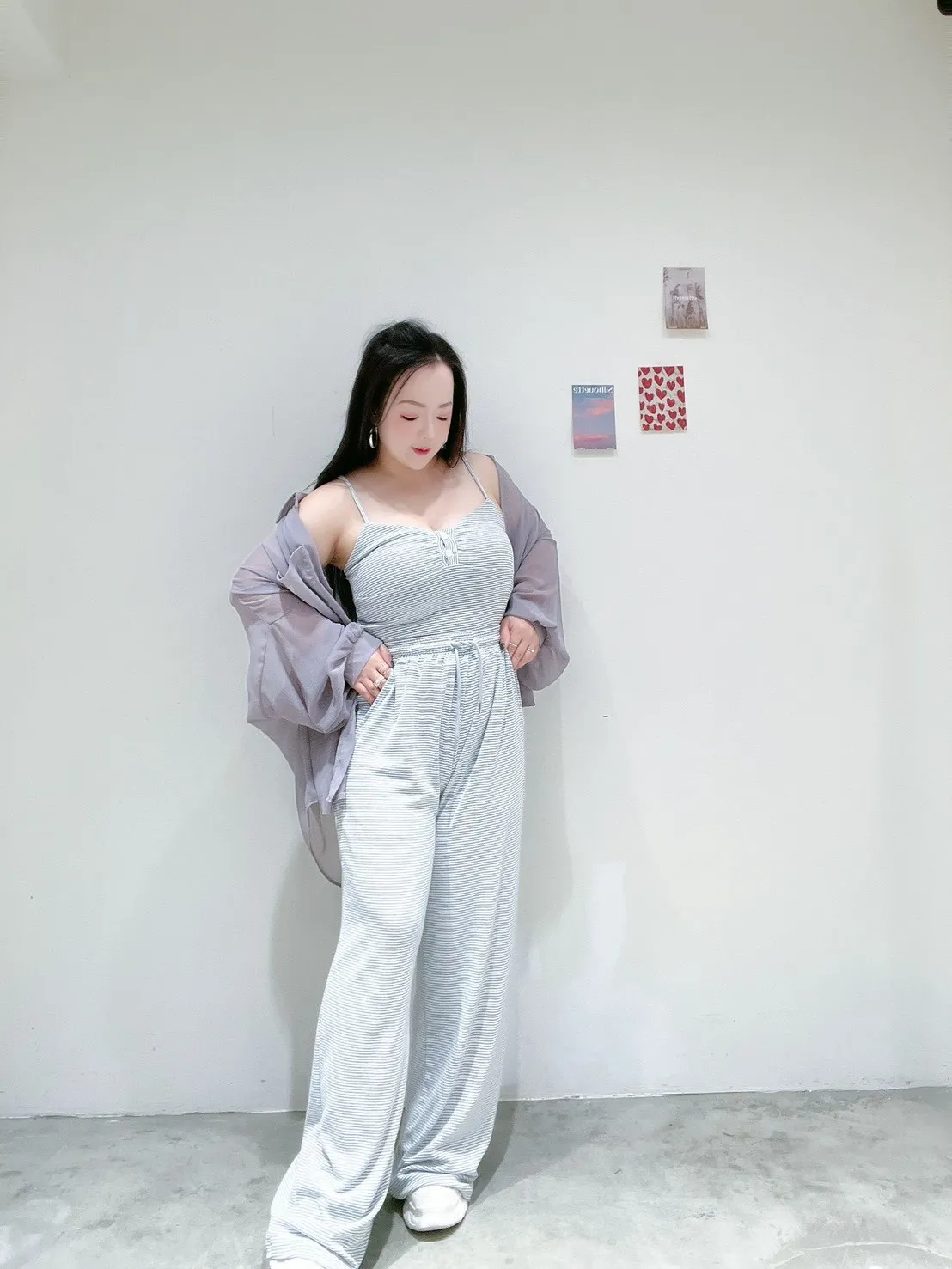 🖤 條紋排扣休閒寬褲套 🖤