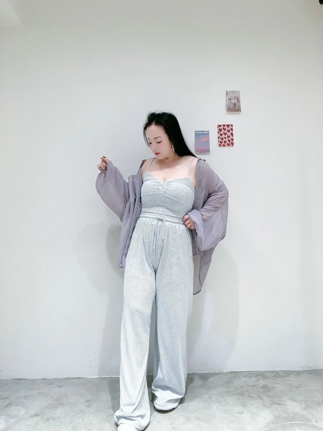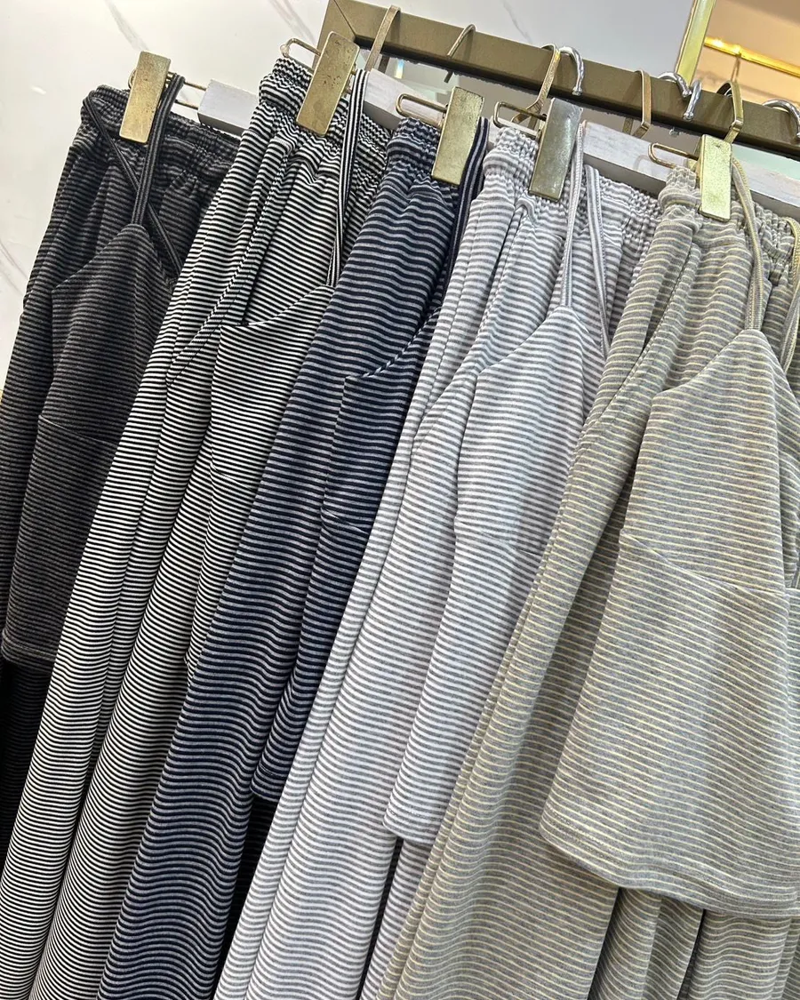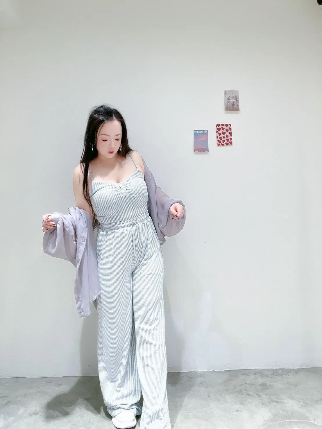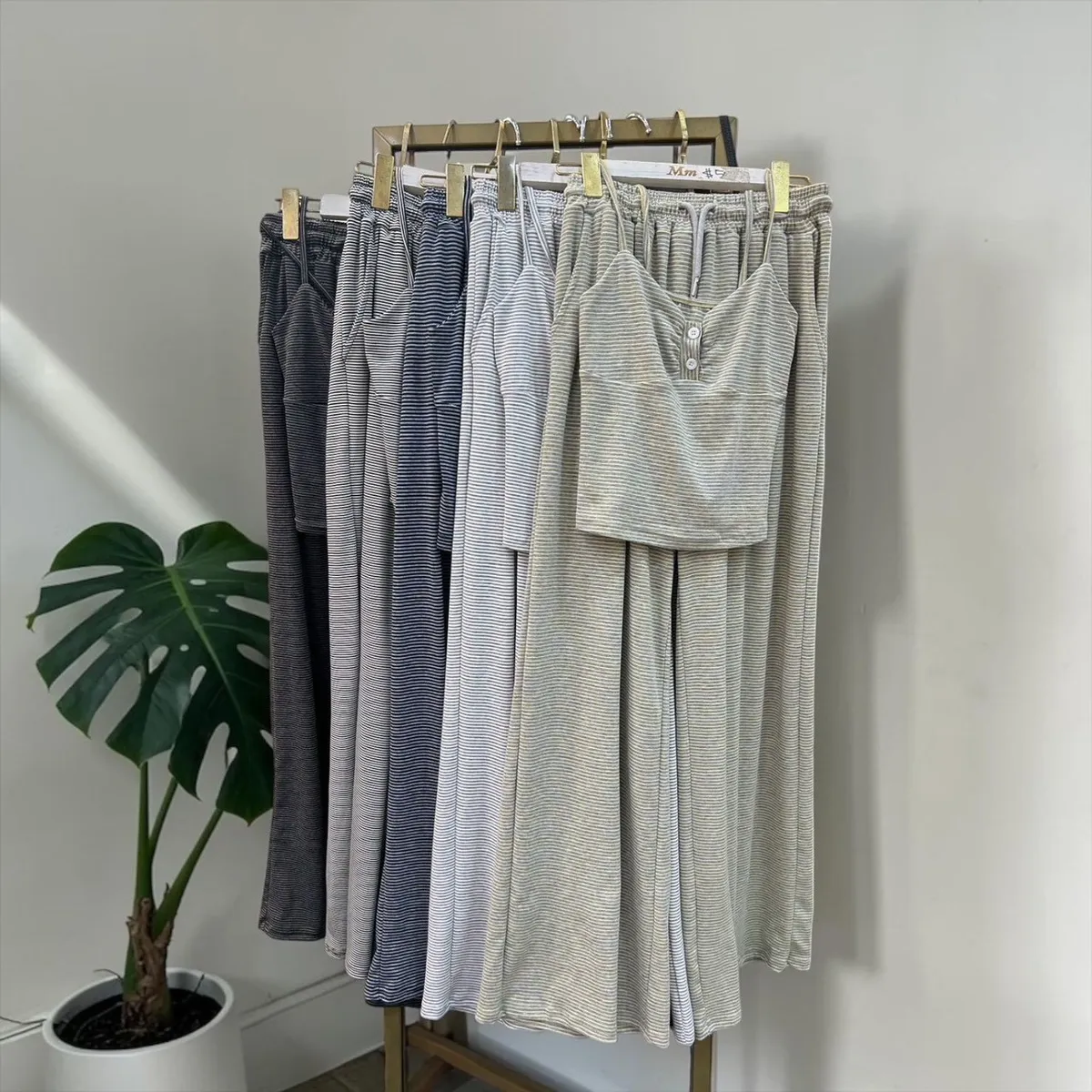 🖤 條紋排扣休閒寬褲套 🖤