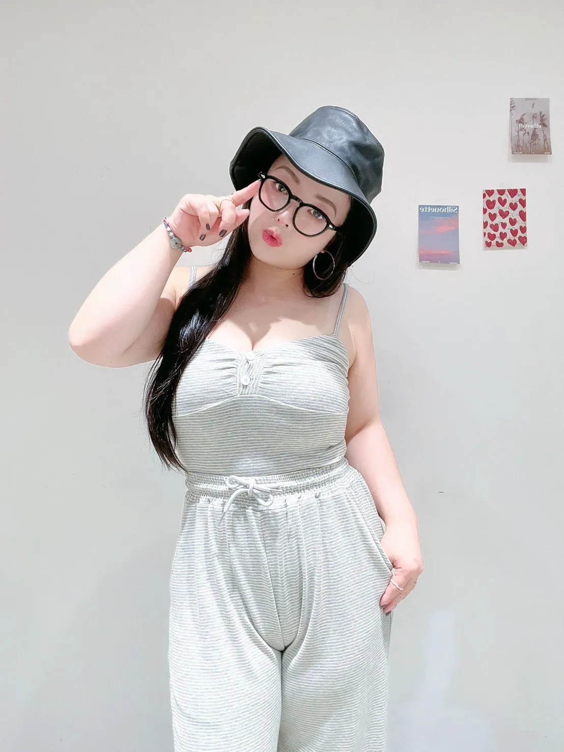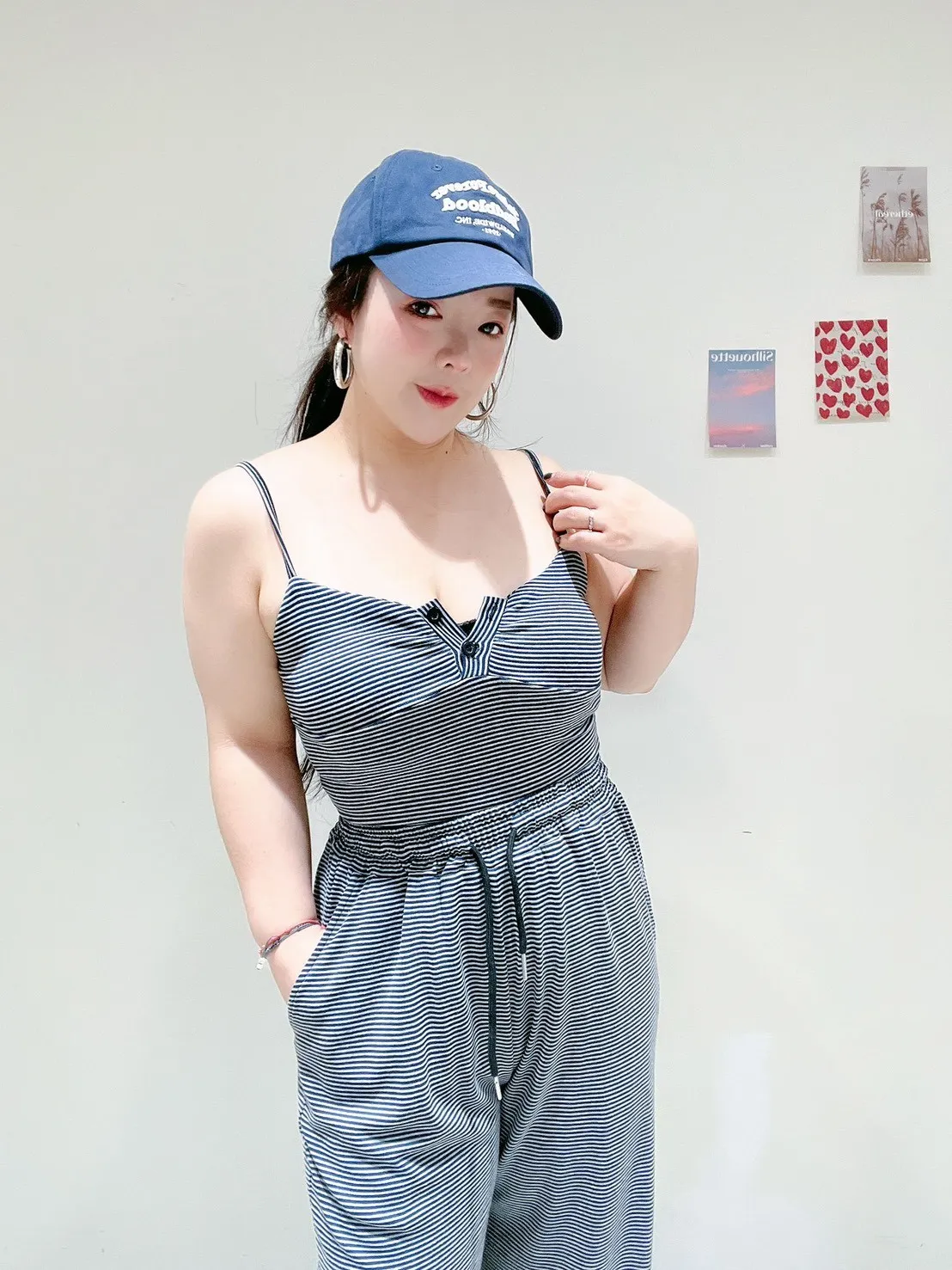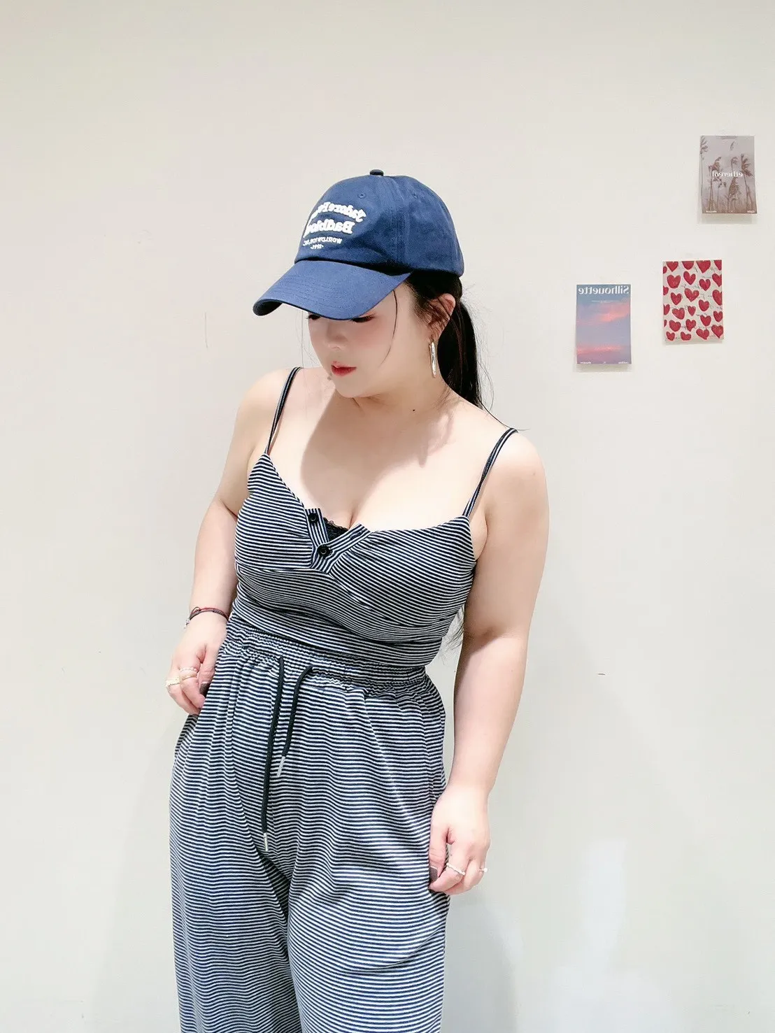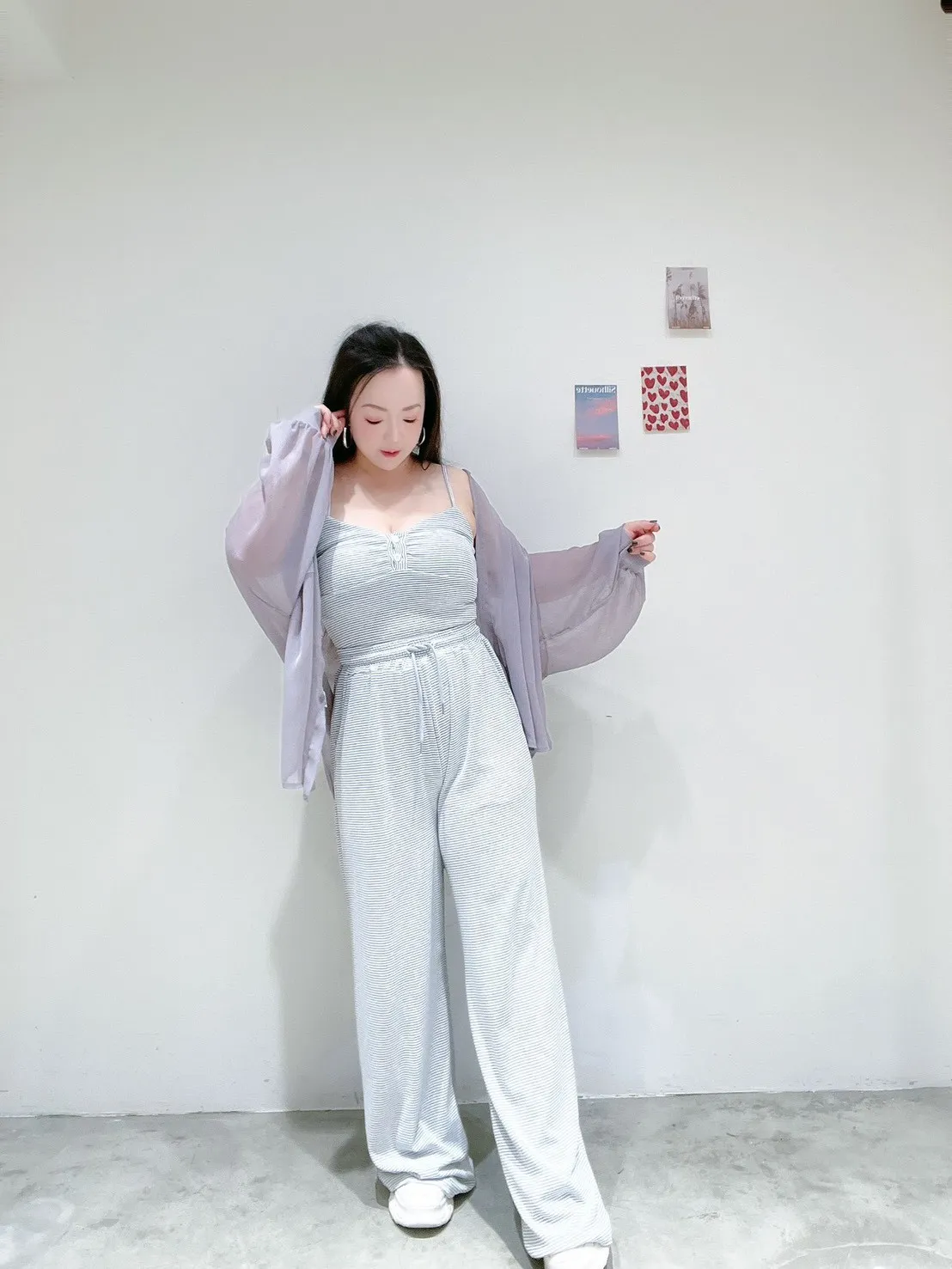 🖤 條紋排扣休閒寬褲套 🖤