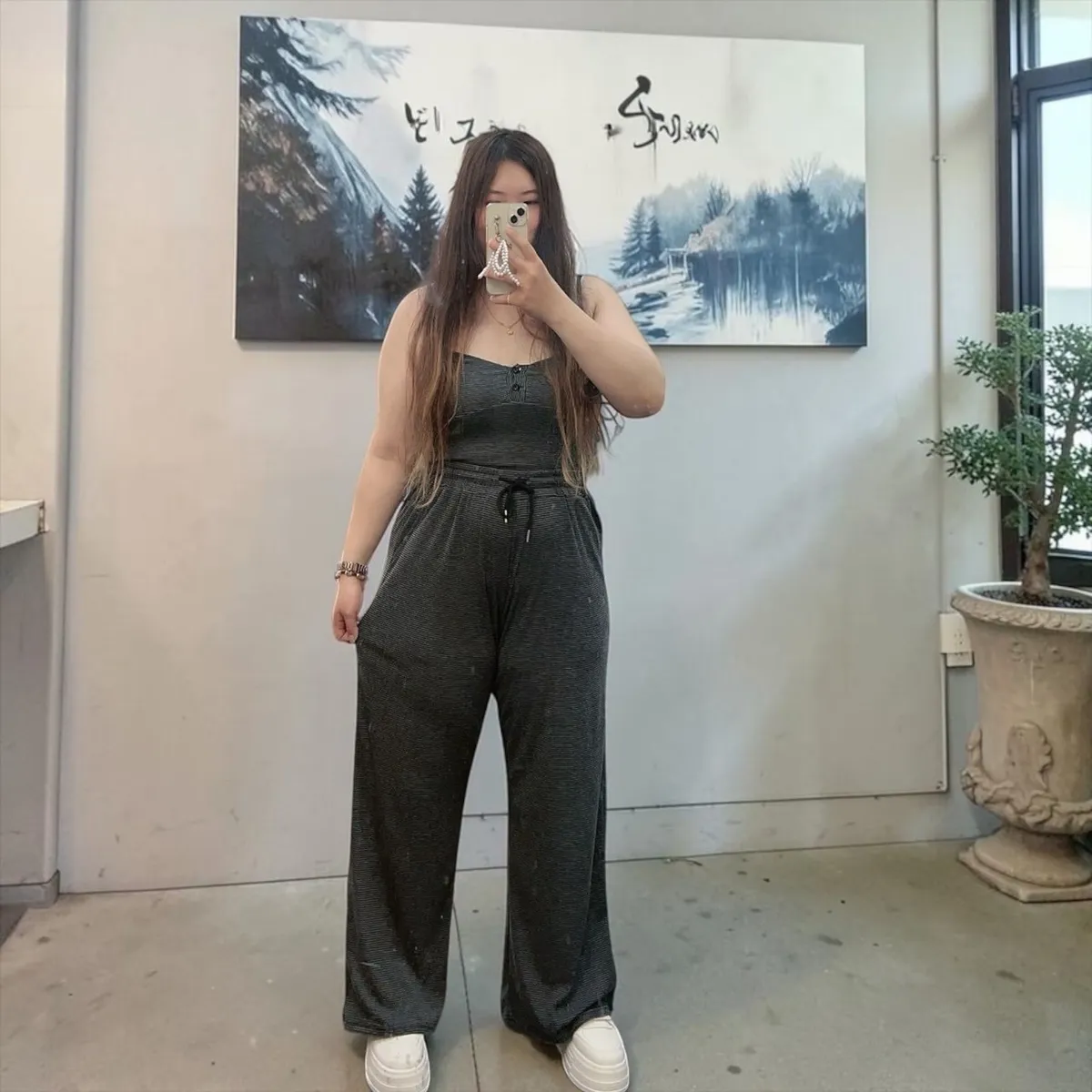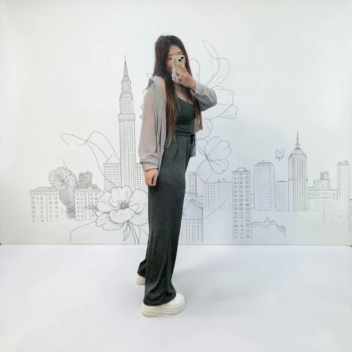 ✔ 高腰寬褲 拉長腿比例